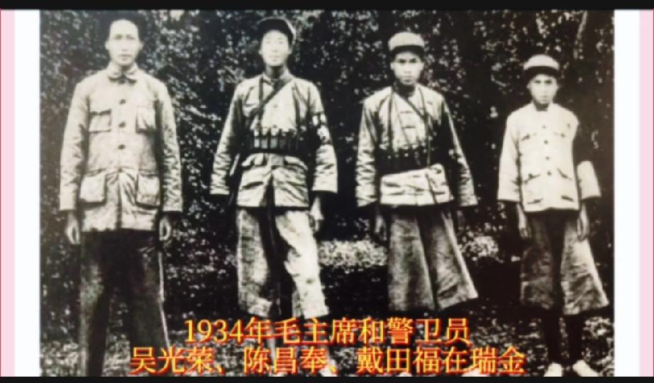这些照片大致概括了毛主席从走出绍山→湖南省立师范求学→参加进步组织→加入中国共产党→参加中国国民党会议→秋收起义→反围剿→长征→延安所走过的足迹。其中两张照片反映的是家庭的基本情况。