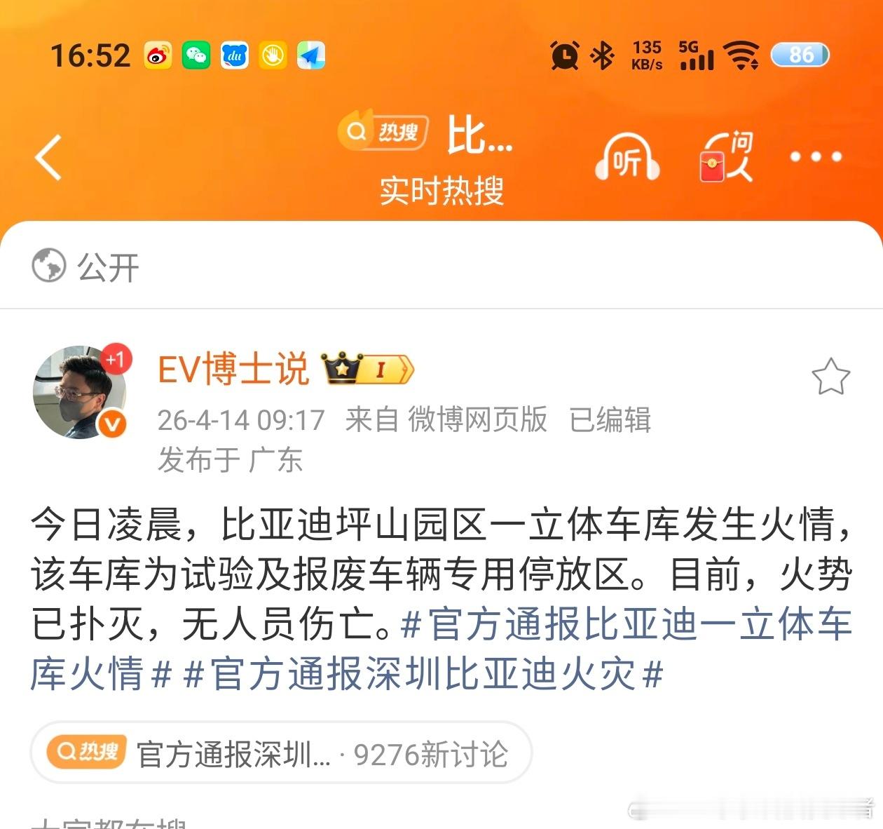 一个停报废车和试验车的立体车库起火,没有造成人员伤亡且火已经扑灭,没想到这次居然热度出奇的高。平常发布会都没有热搜,这次直接登顶热搜第一。