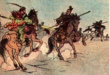 七郎跃马替下六郎。七郎不久前幽州解围时,曾在芦沟桥将这员辽将打败。这次七郎也感到十分吃力。