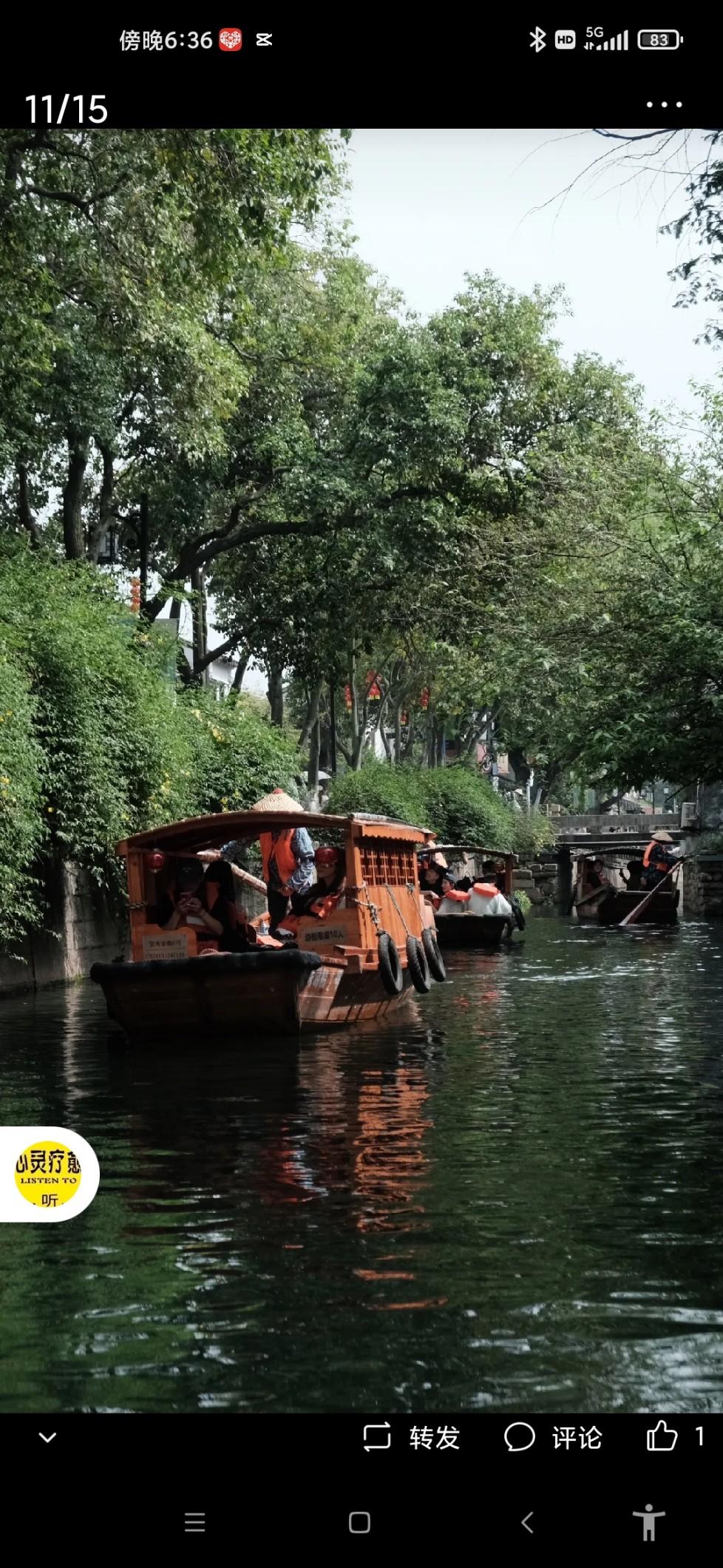 我在前面,老伴在后面,在绕小区环行路转了一圈之后,在走第二圈。