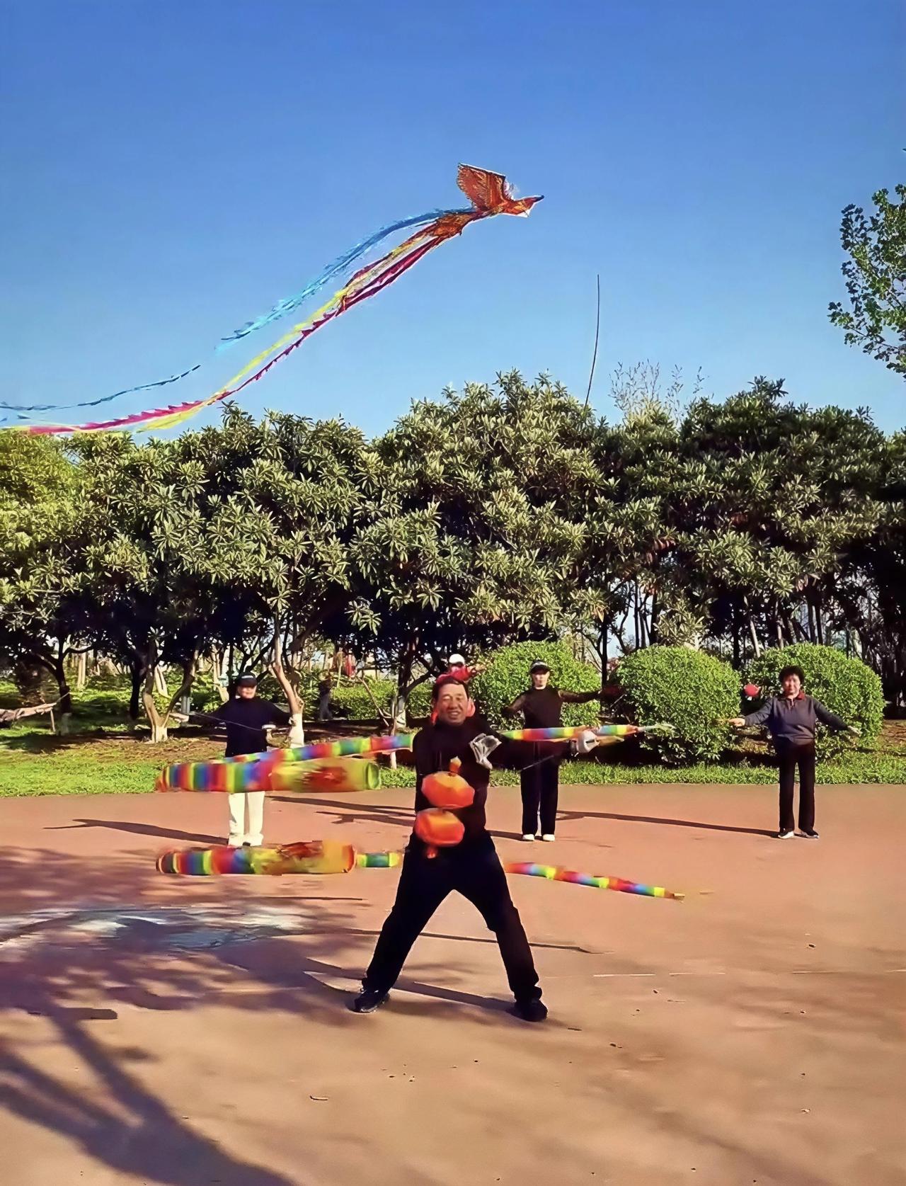 彩色的空竹在他们手中翻飞旋转,时而抛向半空,时而绕身盘旋,像被施了魔法。带头的王叔告诉我,这队伍平均年龄65岁,最大的已经78岁。