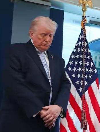 白宫开会,特朗普站着睡着了。 就在台上,他低着头,眼睛眯着,身体还微微晃。旁边
