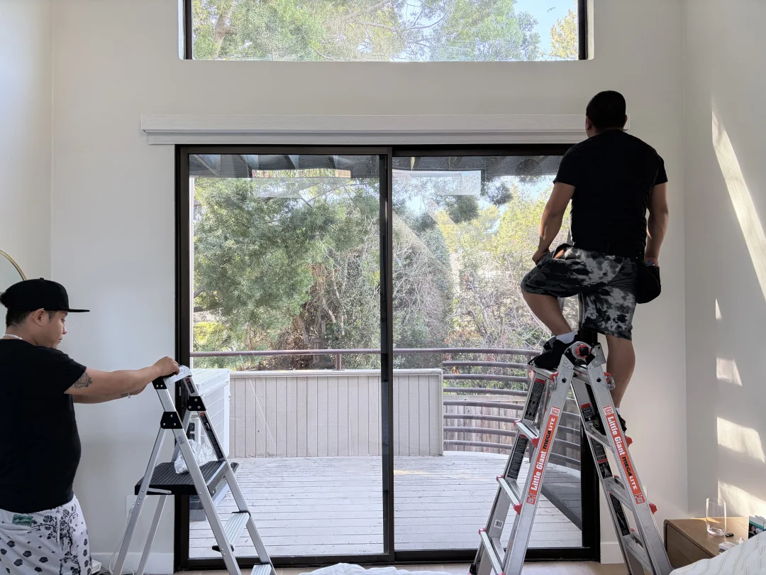 今天在 Mountain View 完工的这套餐厅区域,给出了教科书级别的满分答案!面对这种采光无敌但结构特殊的窗型,如果用传统的布帘,很容易显得厚重拖沓,甚至破坏原本的建筑线条。