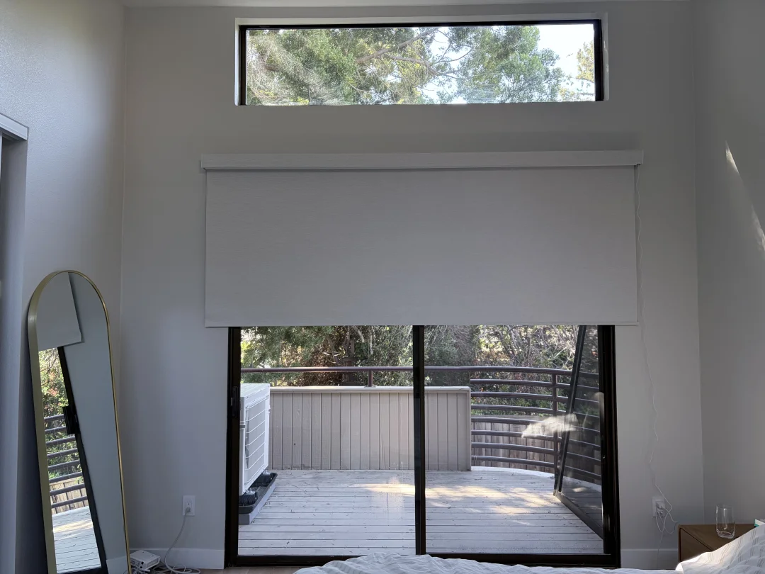 我们为客户推荐并定制了这套透光不透人(Light Filtering)的极简卷帘,最终落地的效果高级感满满: