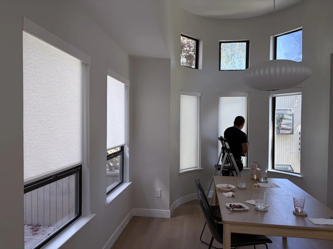 ✅ 化繁为简,完美内装: 每一扇小窗户都进行了独立精准的测量,采用内装(Inside Mount)的方式嵌入窗框。不仅没有占用一丁点餐厅空间,反而完美保留了墙面原本的弧线美感,干净利落。