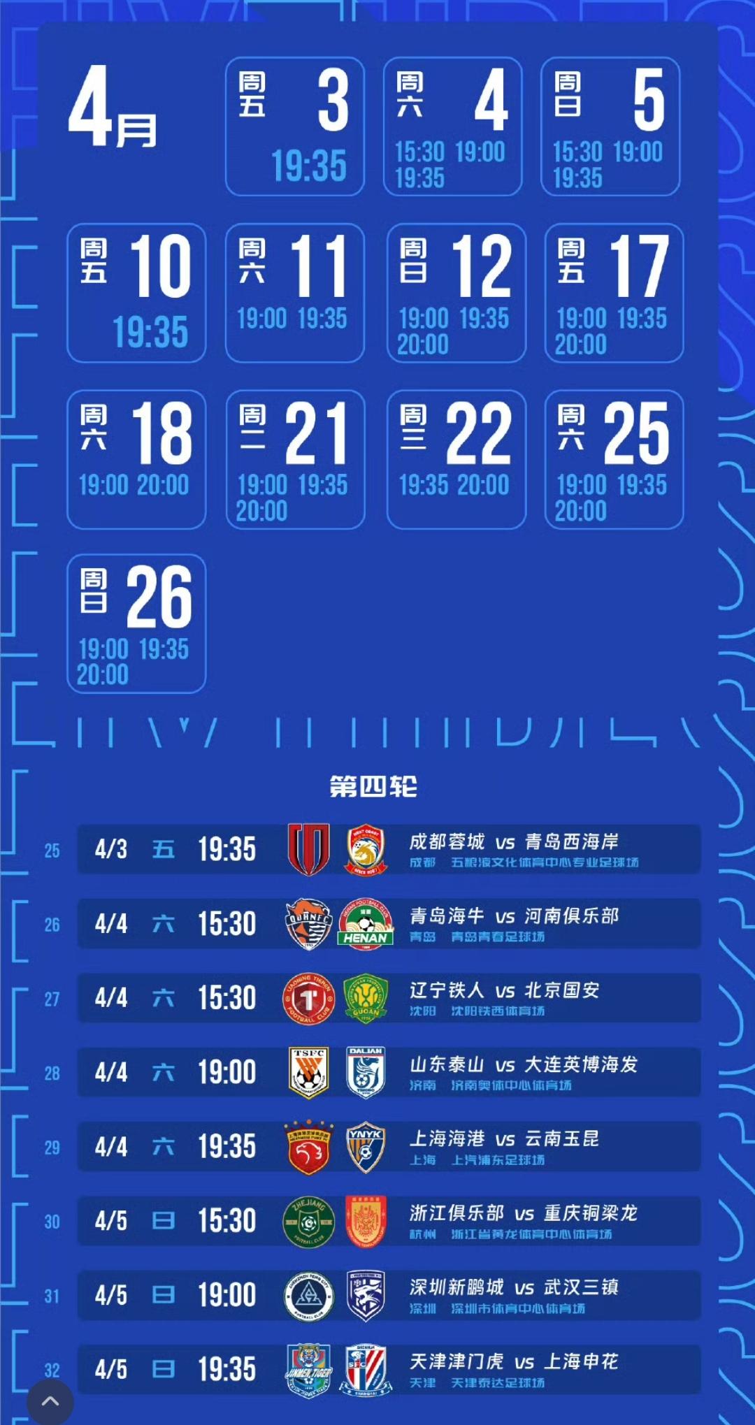 根据中超联赛赛程安排,接下来的六轮比赛将会在不到25天的时间内进行完,平均每4天就要进行一场,基本上可以说是一周两赛。
