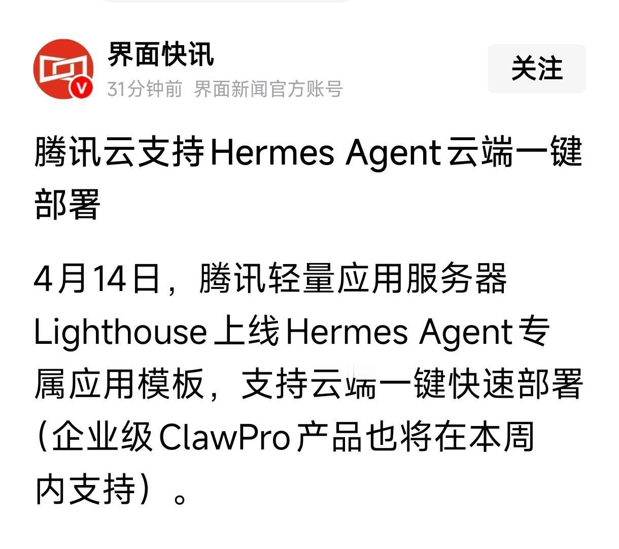 腾讯求生欲望好强!最近hermes-agent火了!绝不能放弃率先在全国开启了部署计划,腾讯云第一时间支持HermesAgent云端一键部署,这对国内朋友来说就是福利,因为自己安装LM Studio 的Gemma-4 模型在本地跑起来比较慢,但是要是给你配置云端直接火爆!
