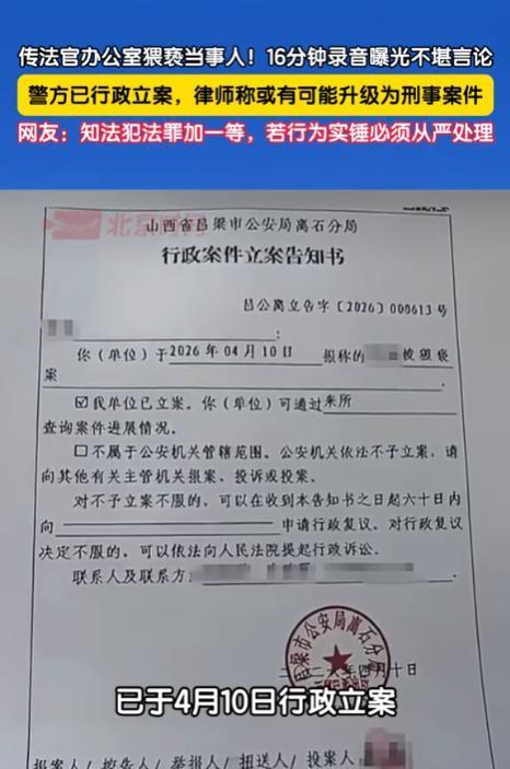 “有权就可以为所欲为?”山西吕梁,一女子和丈夫打离婚官司,突然接到法官电话,称有“新证据”需单独签字。女子以为是转机,可谁知办公室门一关,法官竟然撕下伪装,强行搂抱、强吻、威胁女子长达16分钟。女子一直在反抗,大喊“不要”,可这反而激起了该法官的欲望。好在女子最终挣脱了法官的搂抱,逃了出来并报了警。