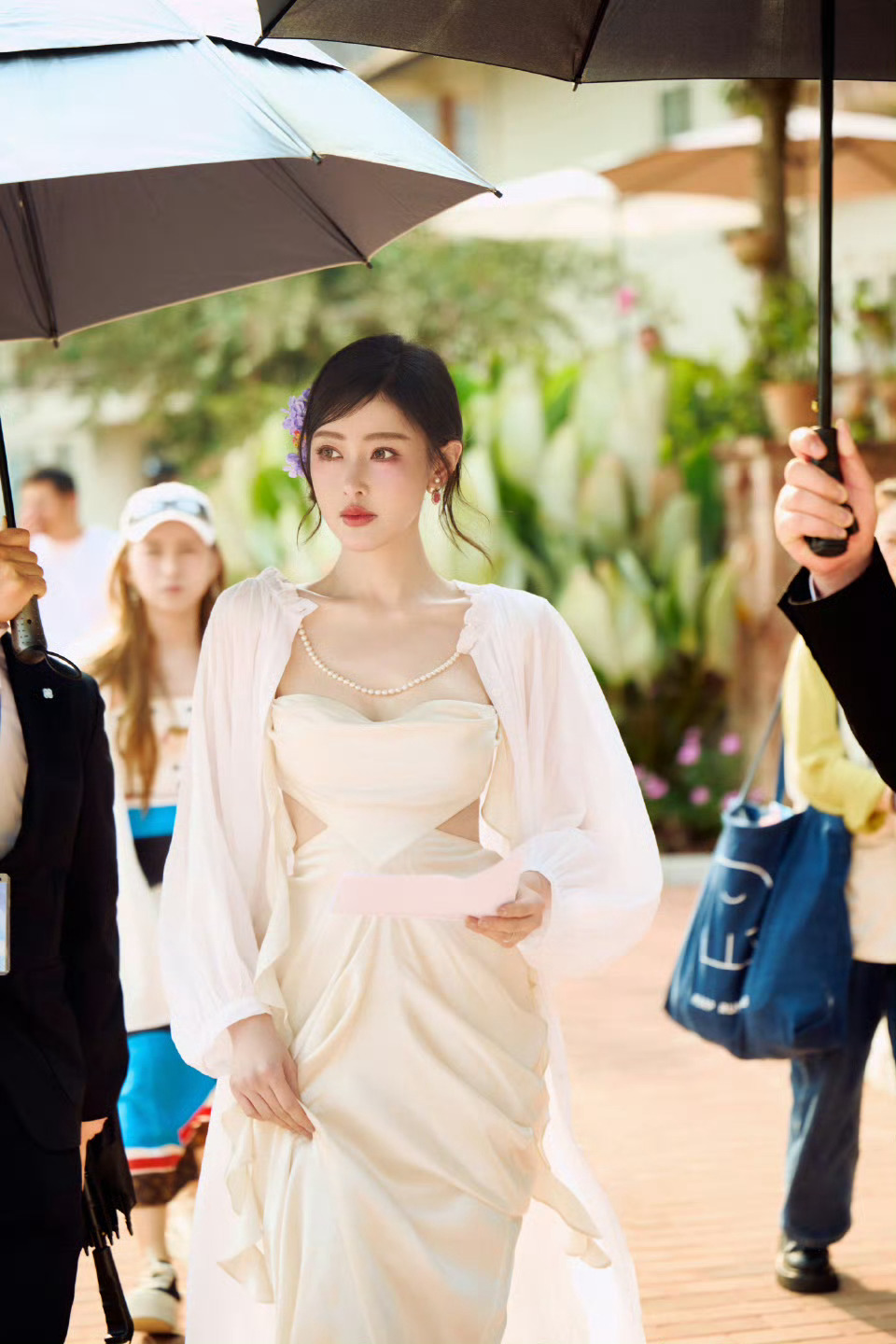 美女壁纸~张天爱,以花为媒,以纱为裳,赴一场春日的浪漫之约蓬松卷发轻拂脸颊,蕾