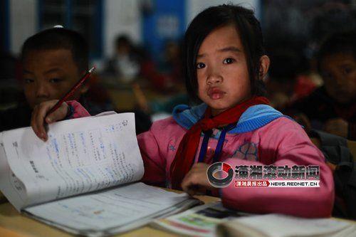 龙张欢情况稍微特殊点,她父母离异,母亲远走,父亲外出打工。所以她从6岁半上一年级开始,就背着8个月大的亲弟弟去学校。上课时弟弟哭了,就抱起来哄一哄。