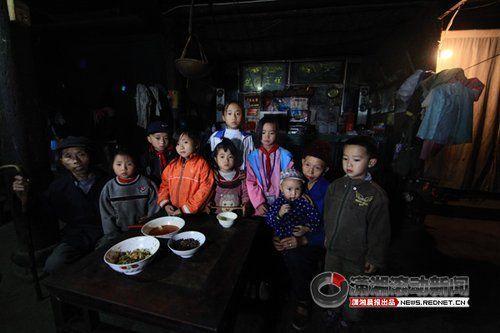 她的家在好友村,一间破旧的木房子,安放着两张床。爷爷奶奶和8个孙儿孙女挤住在这里。8个孩子,全是爷爷奶奶的儿女外出打工后留下的。