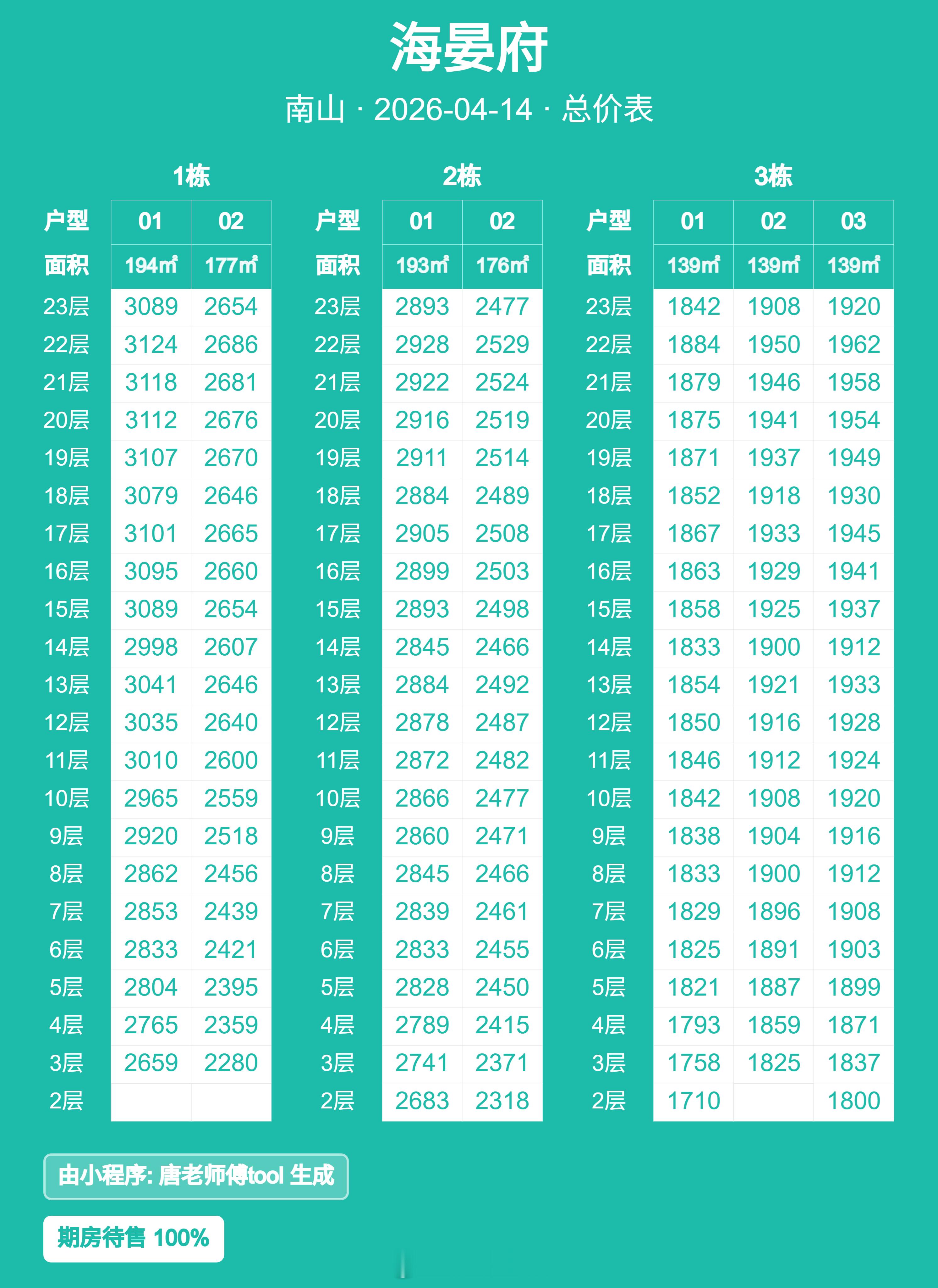 194平总价2659万起,单价13.7万。