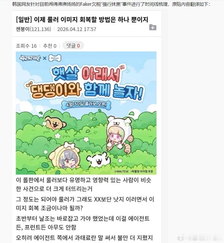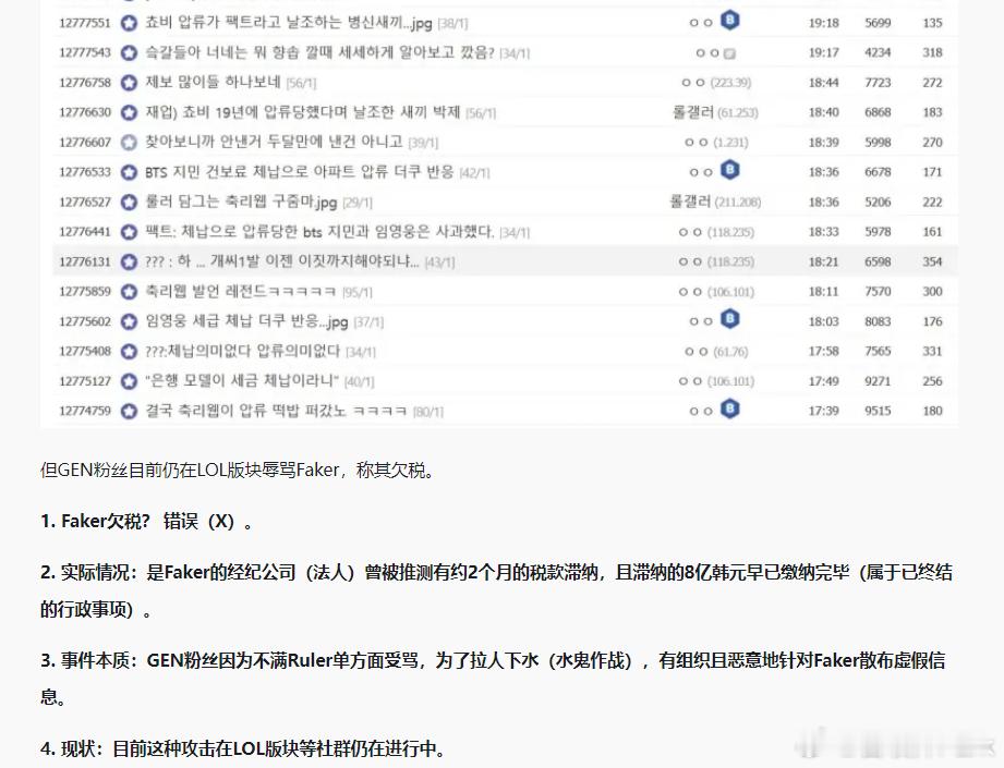 Ruler税务风波还没解决,Faker又被拉出来了,而且不少韩网网友挂着GEN粉丝的标签在带节奏,结果就是各方确认Faker早已消除税务问题!