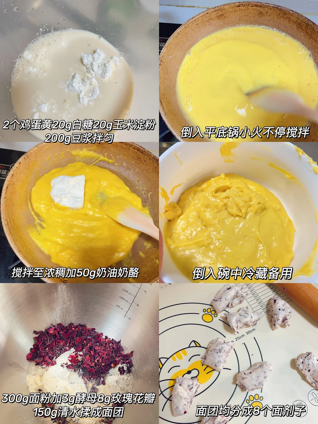 2⃣️面粉加酵母清水玫瑰花瓣揉成面团