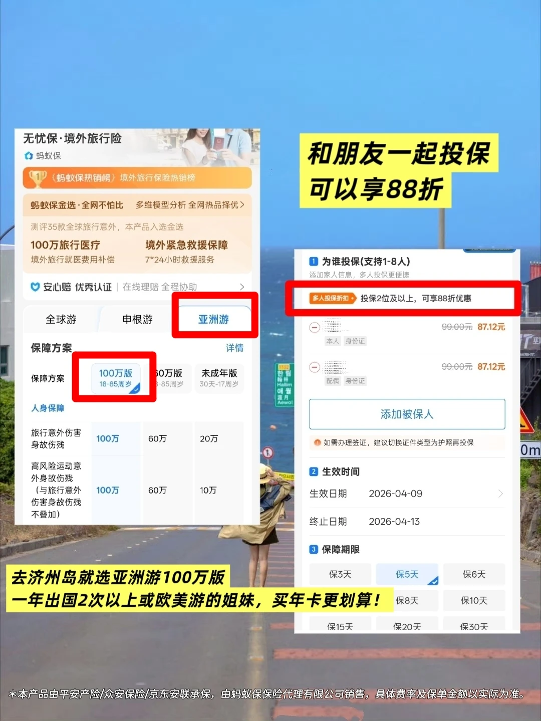 上支付宝🔍旅行险,选择无忧保·境外旅行险,和朋友一起买还有88折!