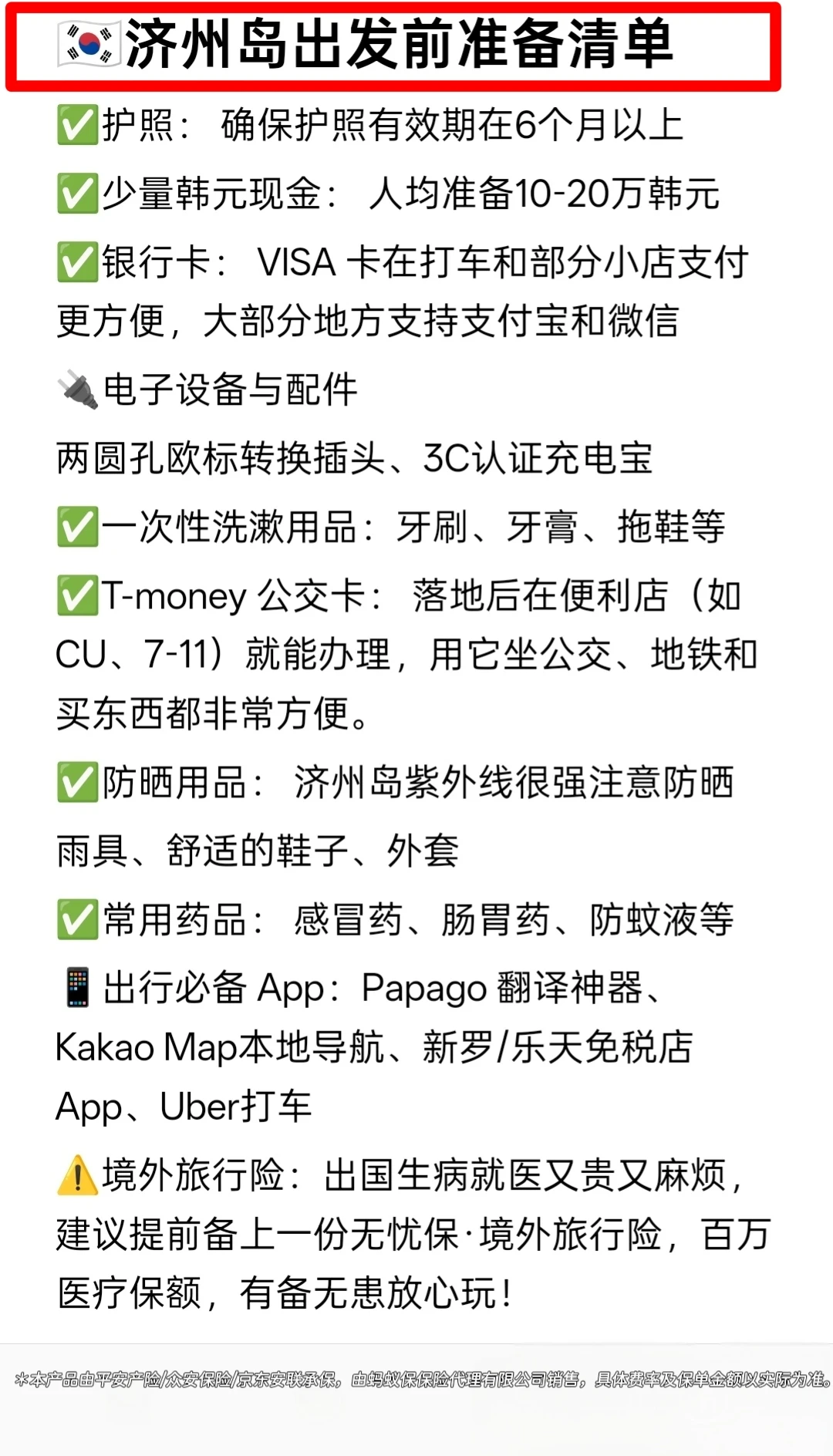 出去玩最怕突发状况打乱节奏,我们飞济州岛遇上海雾,航班延误4个小时才起飞,还好旅行险赔了300元,它有航班延误保额1800元,每4小时赔付300元,行李延误保额2500元,旅行变更保额2万!