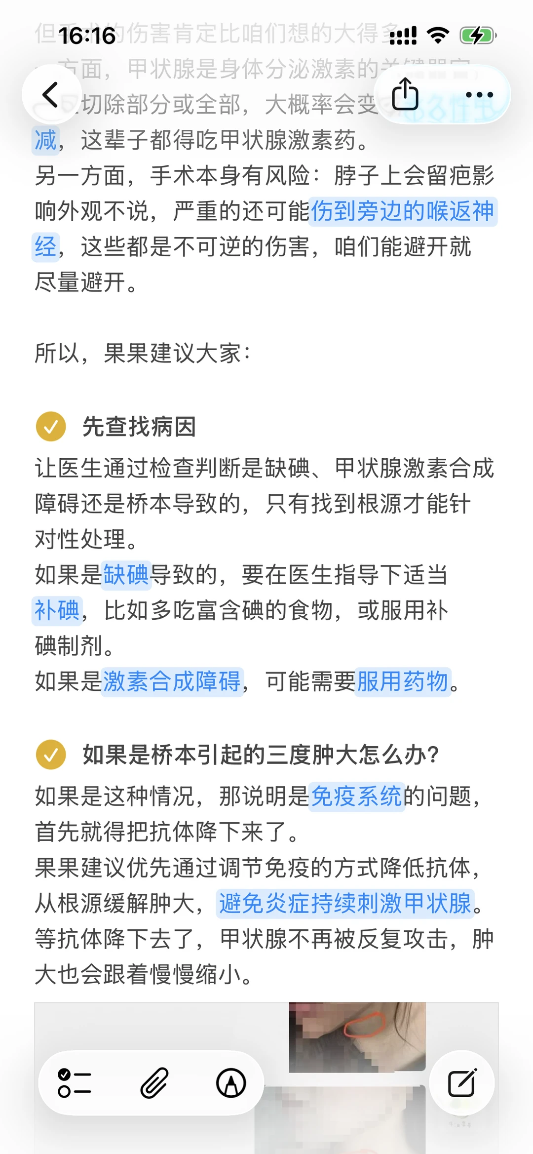 但如果是桥本导致的,那就得先修复免疫系统了,只有让抗体不再攻击甲状腺,你的脖子才能慢慢缩小。