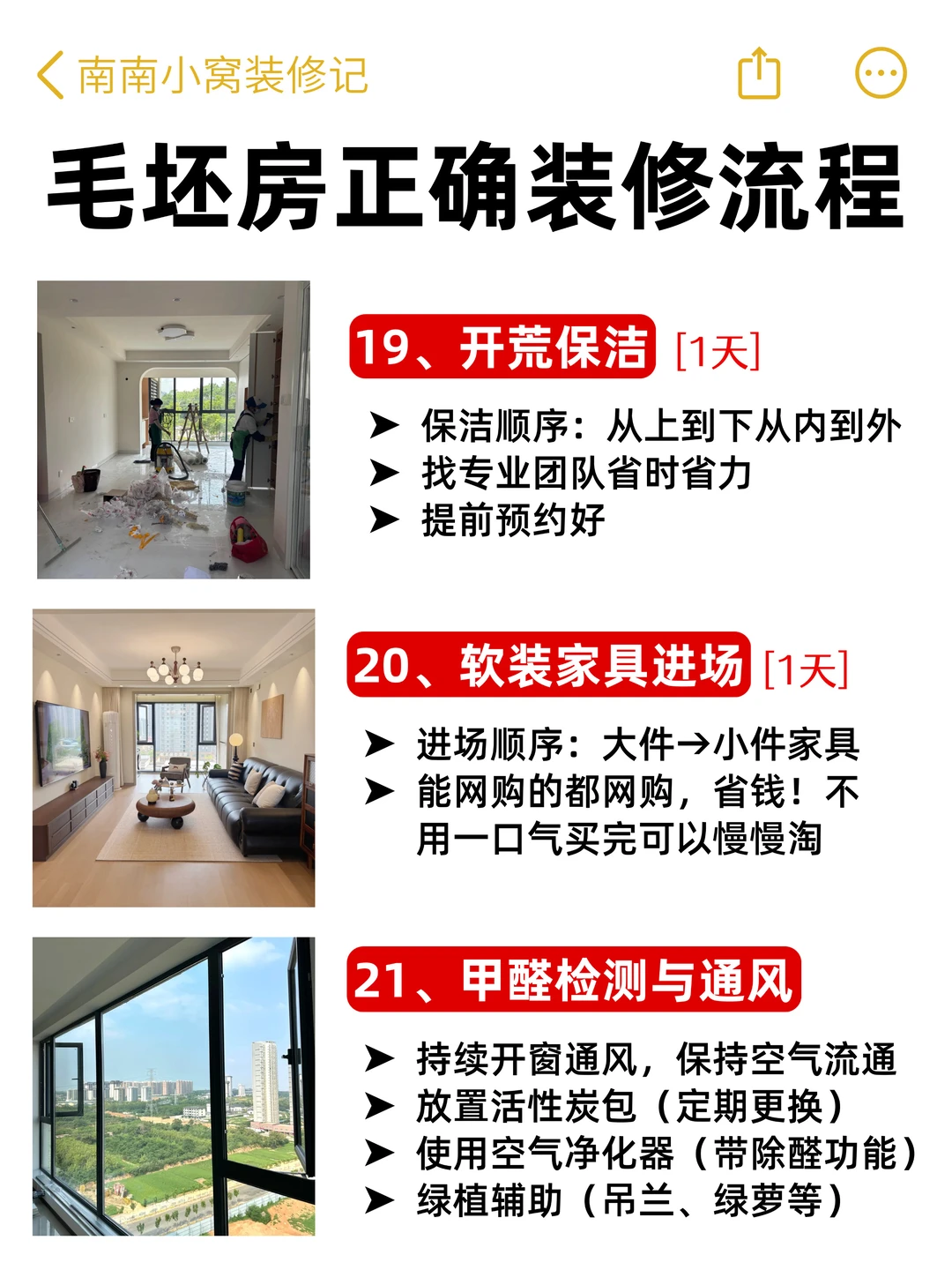 整理了超全的毛坯房装修21步流程,从砸墙到甲醛检测,每一步都标了工期和避坑要点,照着装不踩雷,亲测实用!