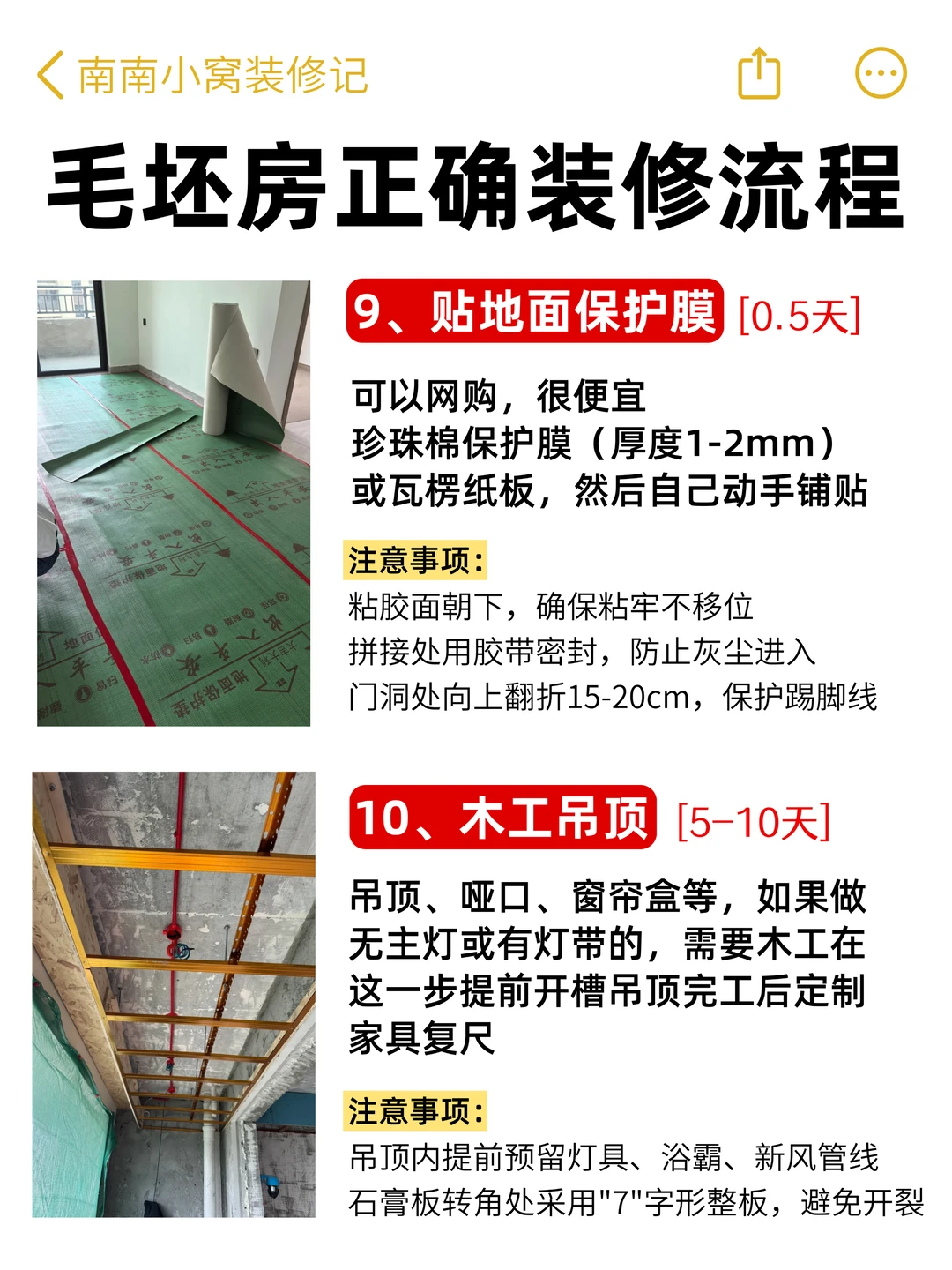 9️⃣ 贴地面保护膜(0.5天):珍珠棉/瓦楞纸板,自己就能贴