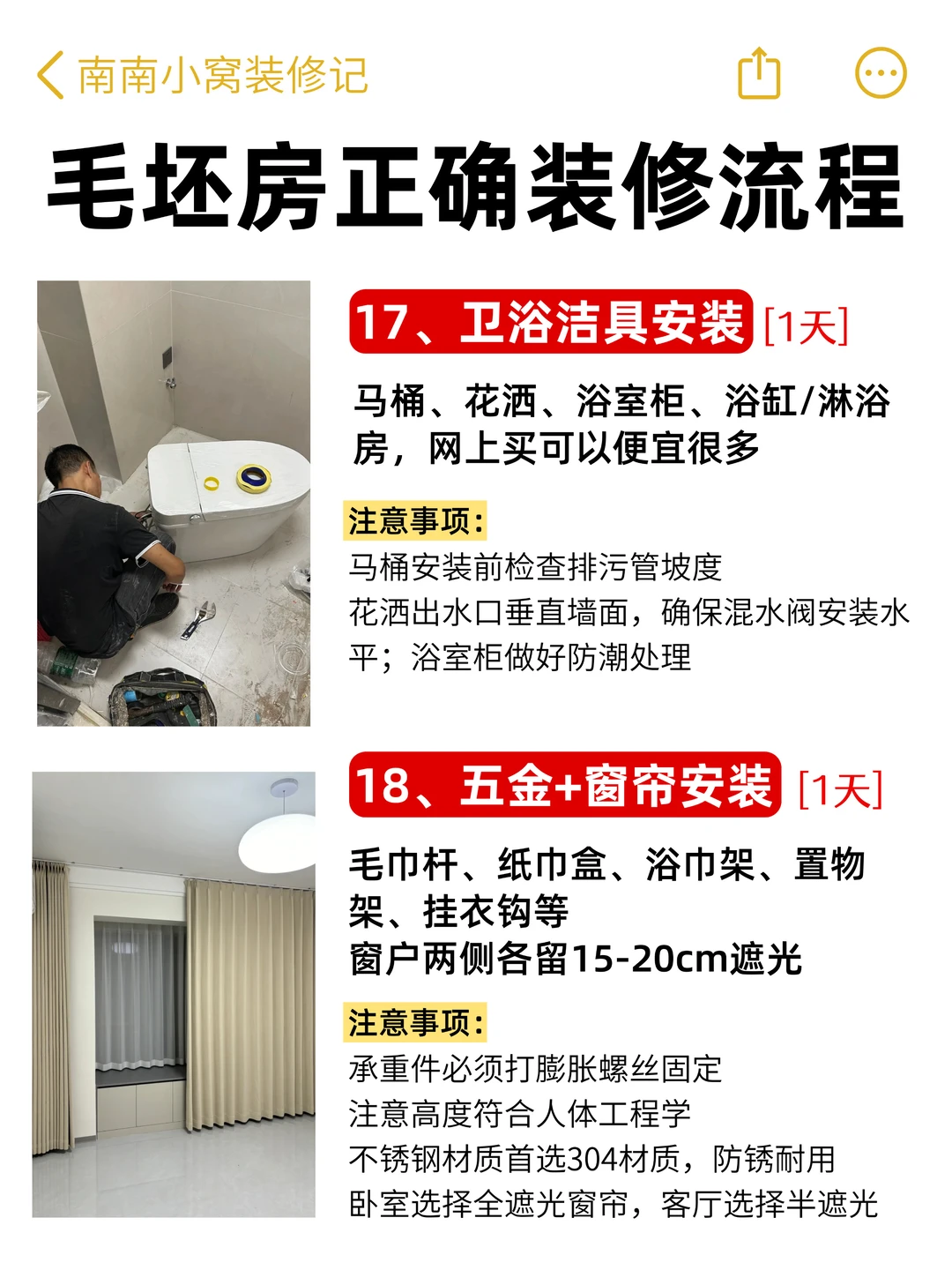1️⃣8️⃣ 五金+窗帘安装(1天):304不锈钢防锈,卧室选全遮光