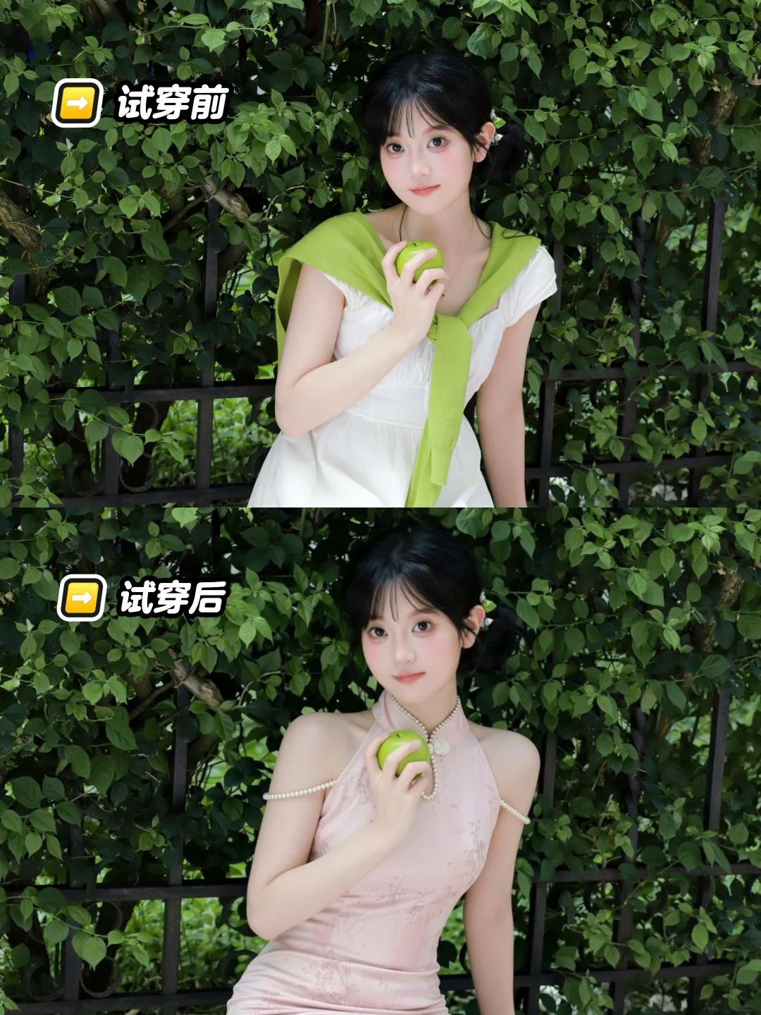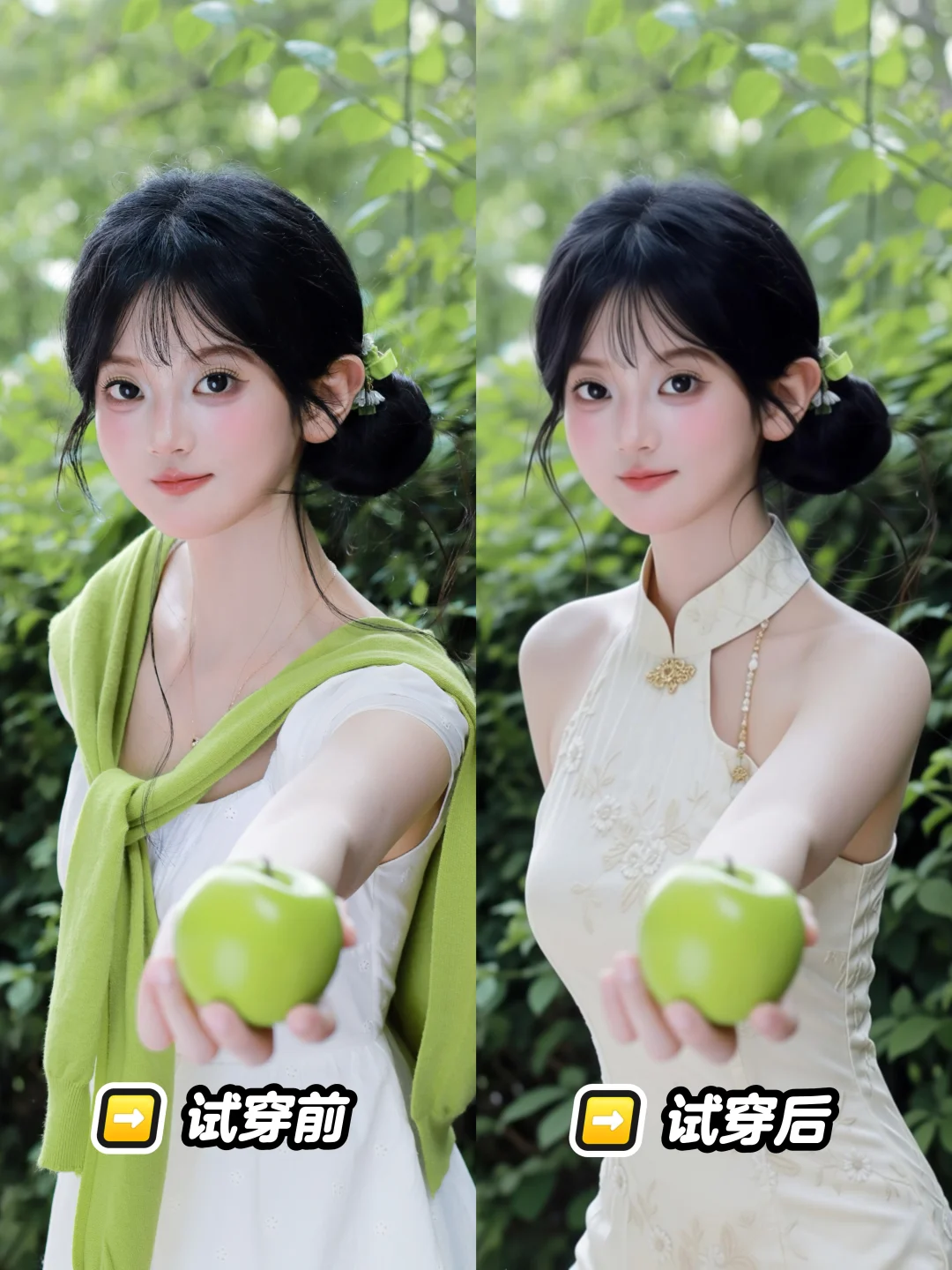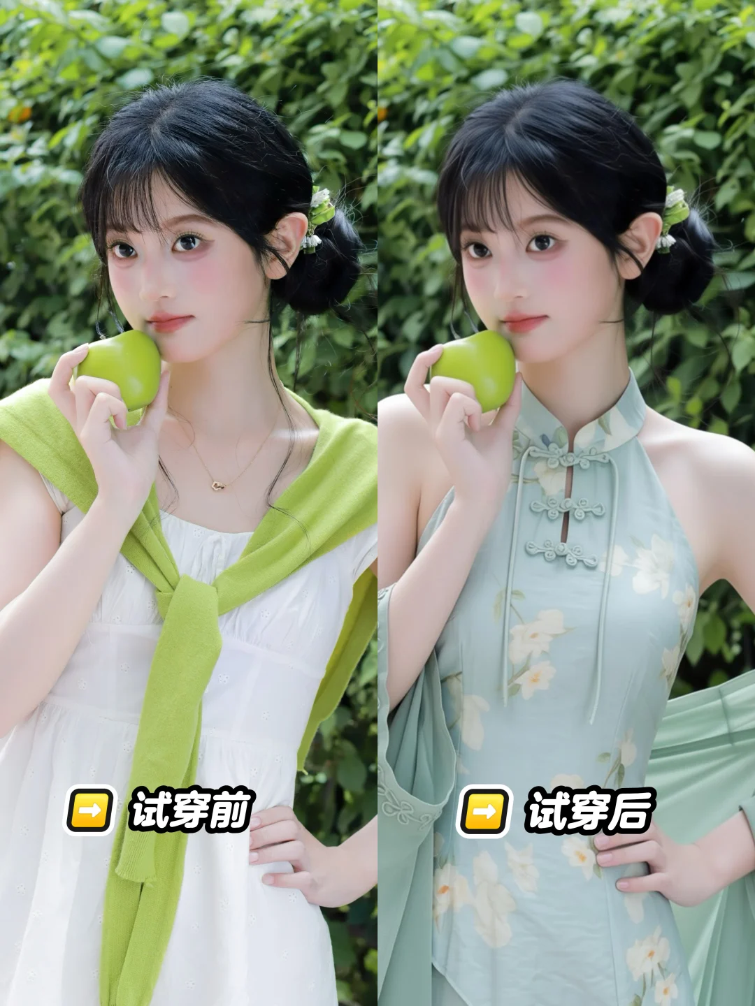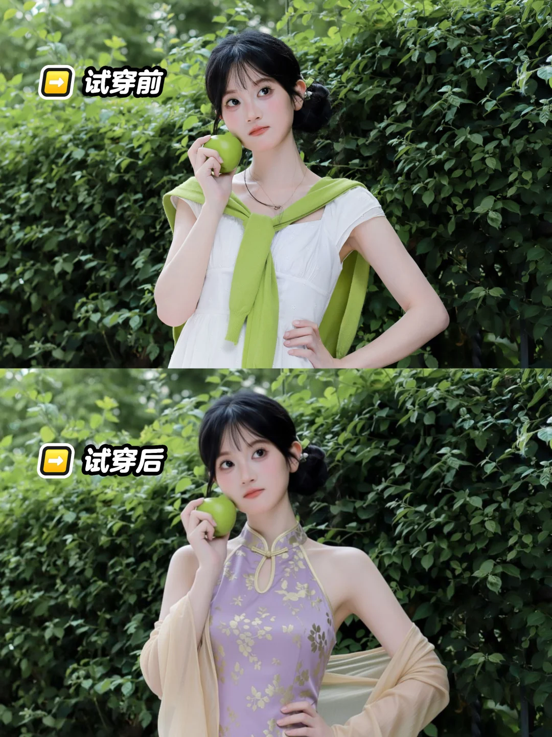 加购很久的旗袍一直担心自己驾驭不了,没下手,这回AI试衣后发现原来自己穿旗袍也不违和!!入手!!!