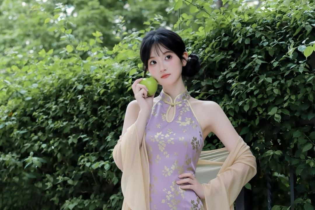 一袭旗袍,勾勒出东方的优雅与柔美。裙摆上的花卉图案,仿佛是春日里绽放的花朵,诉说