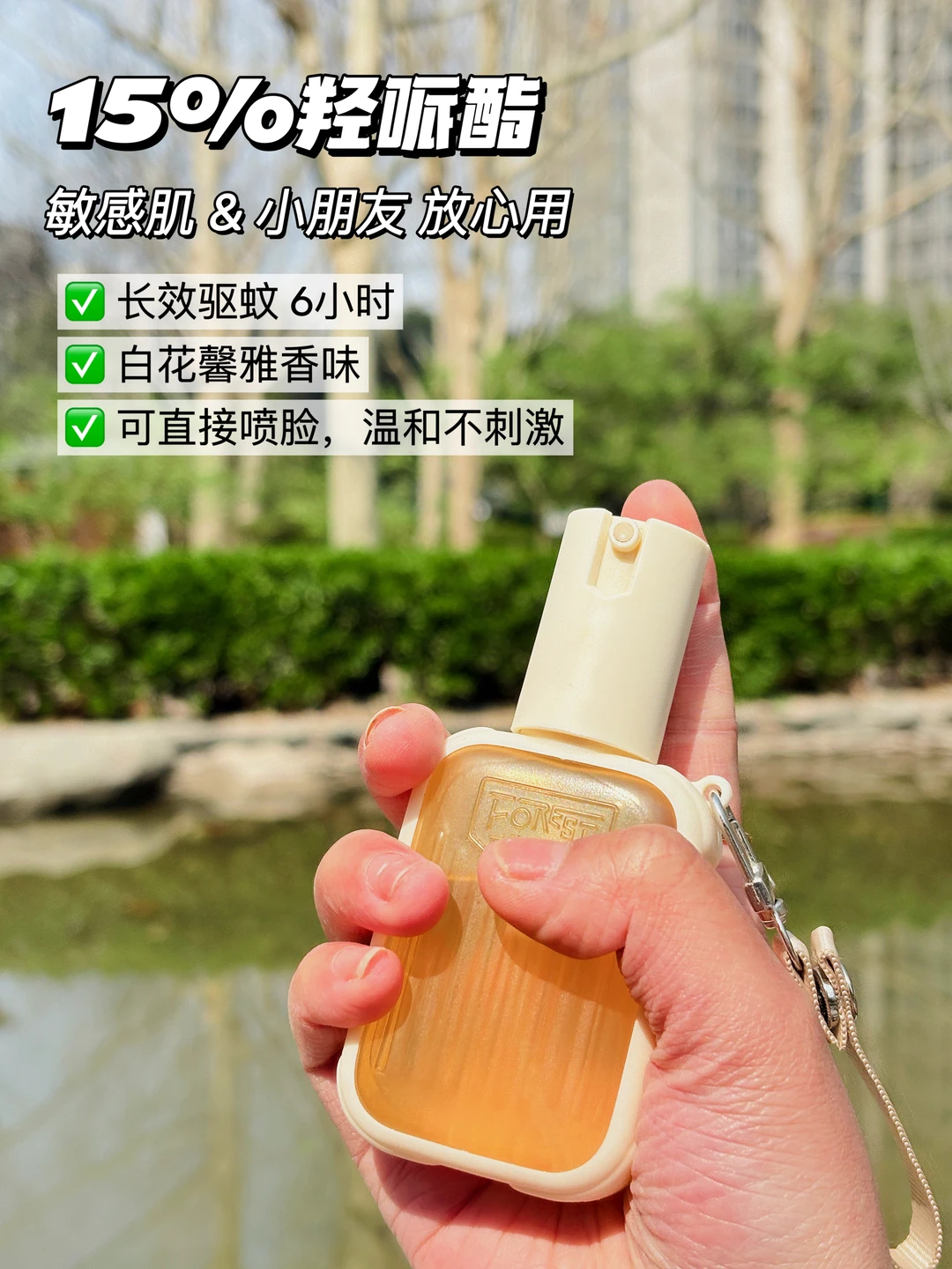 这有两款成分,15%避蚊胺,国内许可范围内最高浓度,实测徒步8小时都没有蚊子来骚扰,淡淡的玉龙茶香不刺鼻,防水防汗,户外暴汗也不掉线。另一款15%羟哌酯,更温和,敏感肌和小朋友都能用,甚至可以直接喷脸!白花馨雅香味也特别好闻。