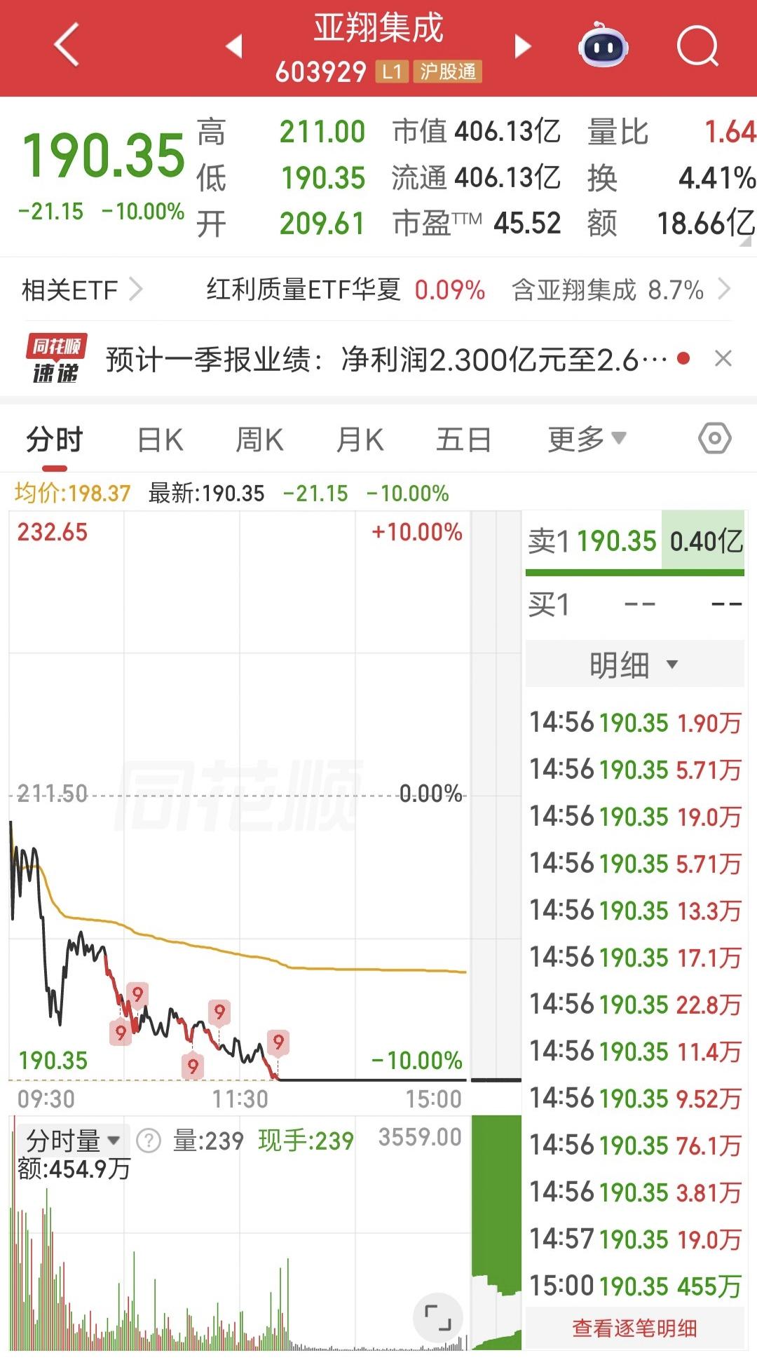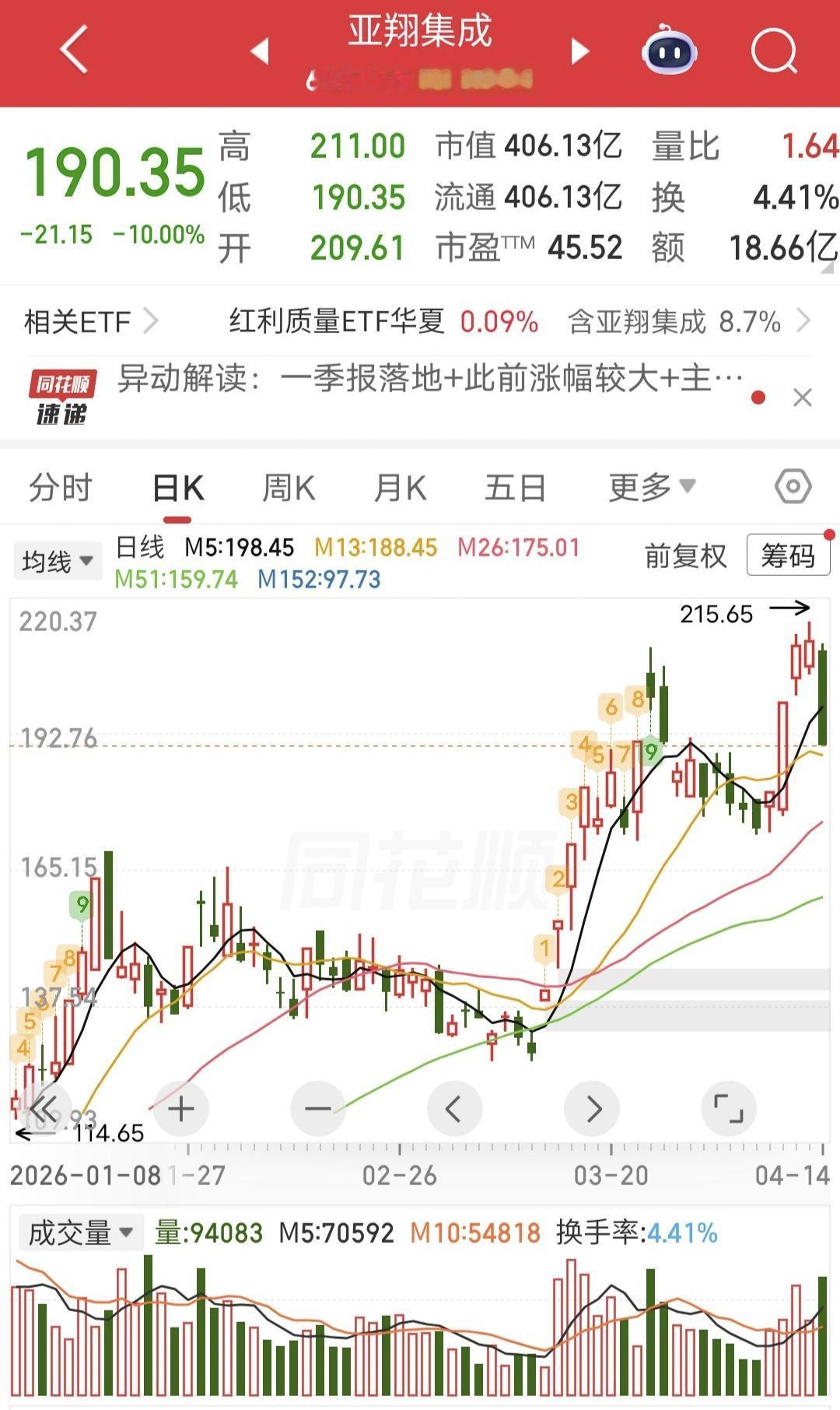 章盟主怒砸1.2个亿! 虽然今天行情看着火热,但也有高位股被摁跌停,比如亚翔集