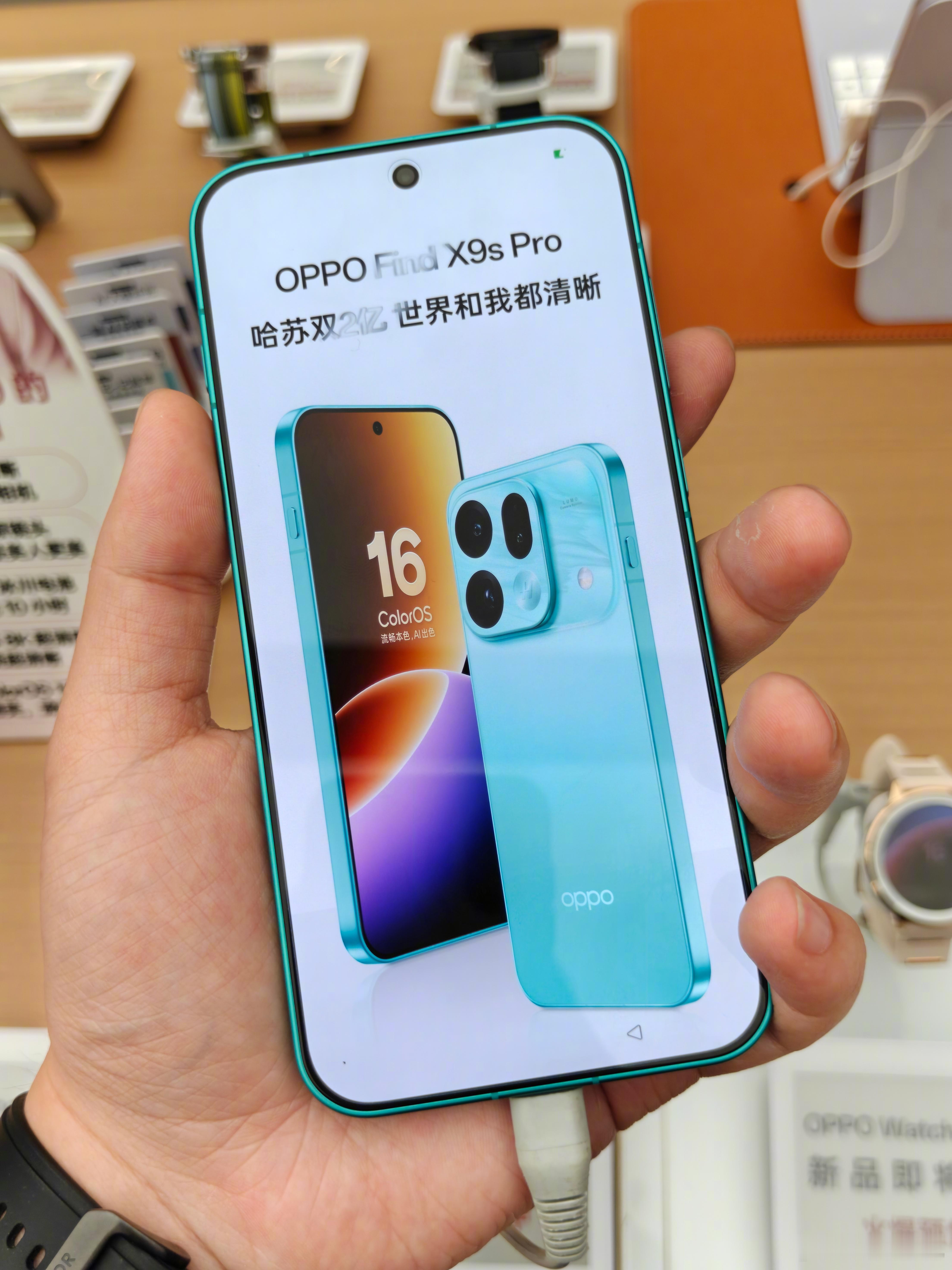去对面商场买晚饭的时候,顺便去 OPPO 门店看了下 X9s Pro,小小的还挺不错。Deco 突起也挺克制,就是还不让进入系统。