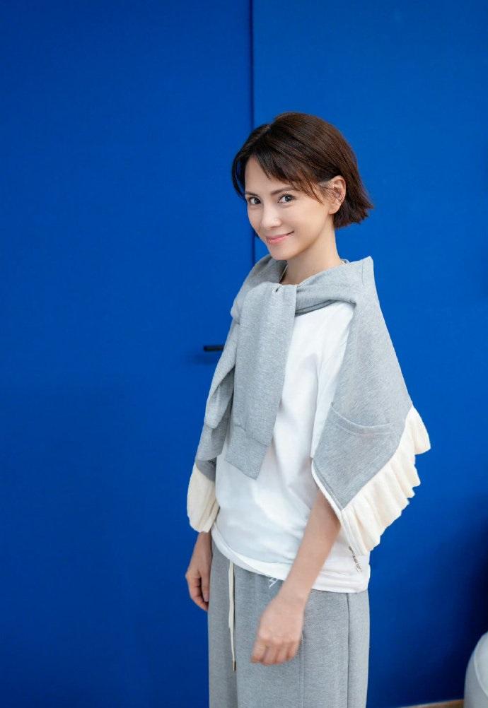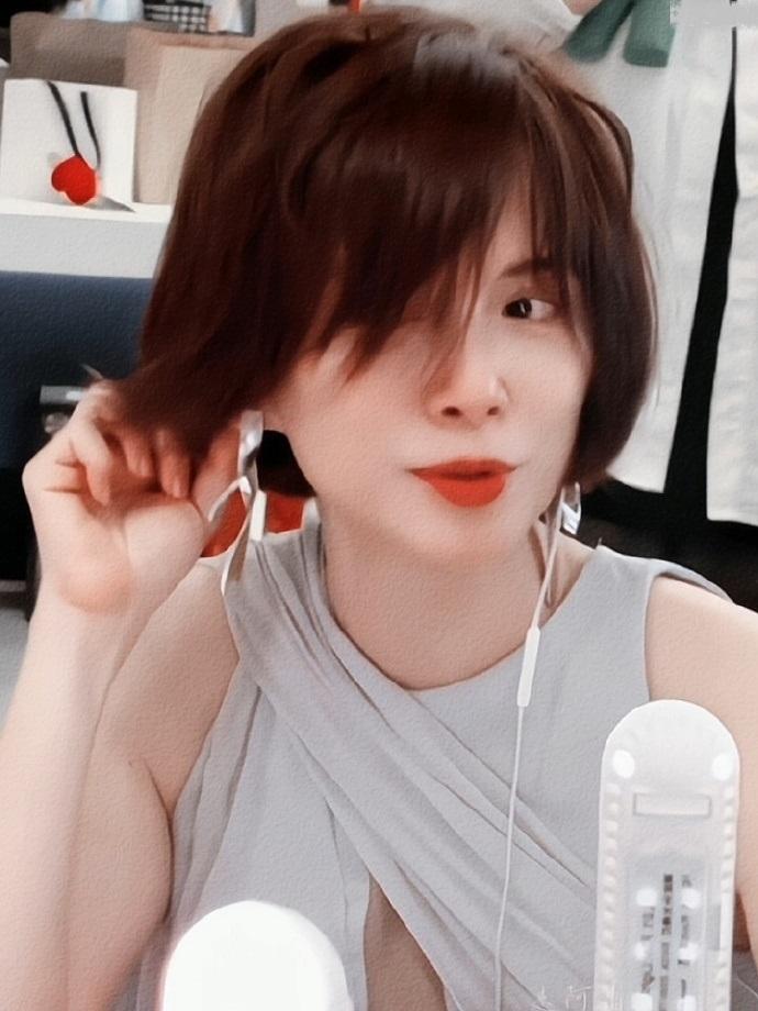 李心洁留着清新的短发,增添了干练之美,也非常的潇洒。