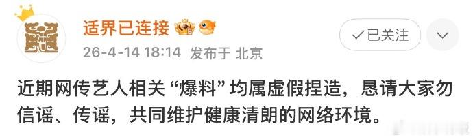 于适对接否认因私联退团于适对接否认退团传闻 于适对接否认退团传闻:针对近期网传艺人相关的“退团内幕”等爆料均属虚假捏造,恳请大家勿信谣、传谣,共同维护健康清朗的网络环境。