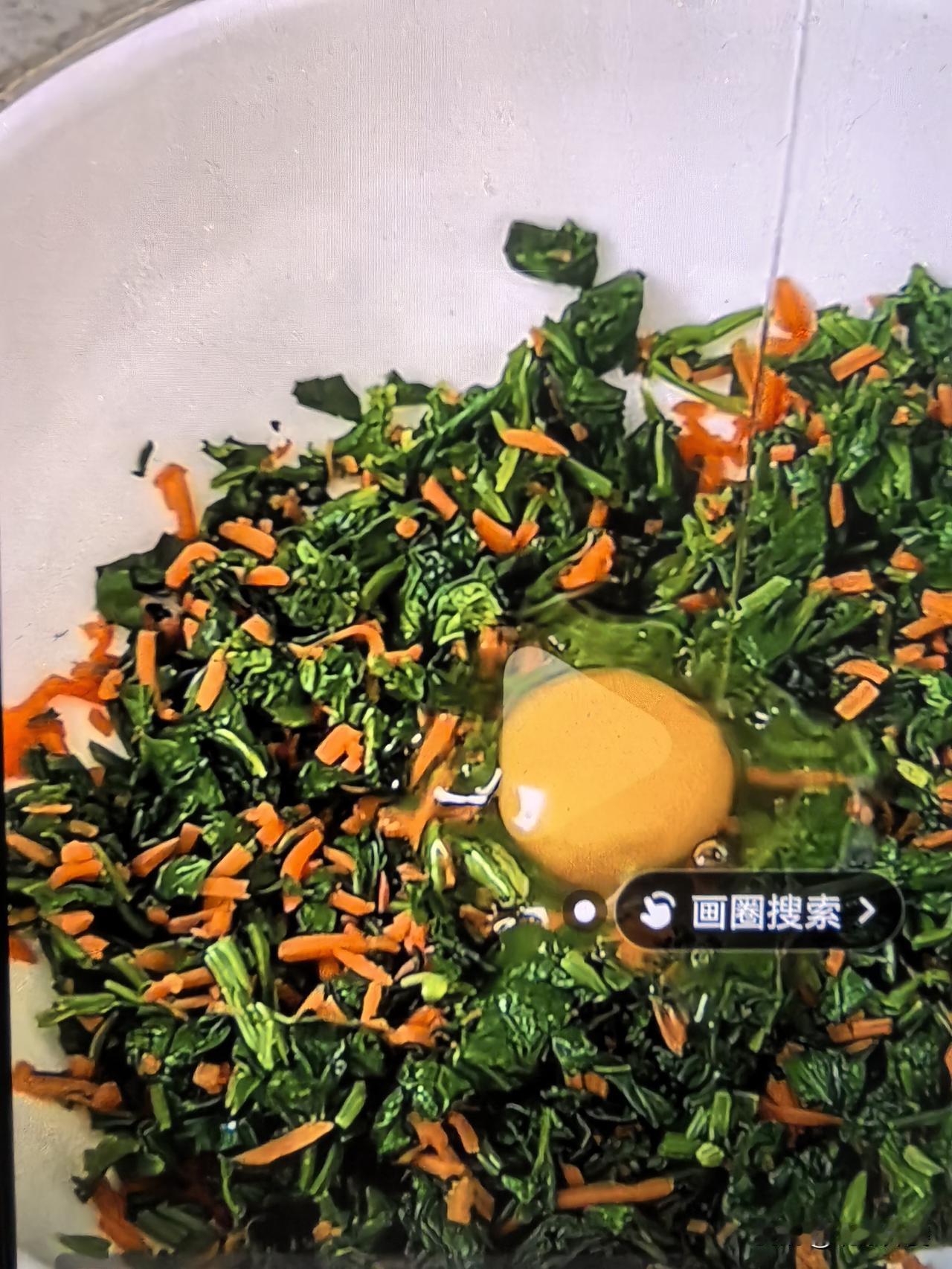 1. 锅中水开,加少许盐,把菠菜洗净焯水,去除草酸,变绿就捞出,马上过凉,把它挤下水分,不用挤太干,因为后面要加玉米面,挤太干还得加水,切成小粒就行,不用切太碎,再切点胡萝卜碎放里,又营养又好看,先再菜馅里加上适量的小苏打,把它抓匀了,这样蒸的时候,菠菜不变色,加了小苏打窝窝头还软乎不硬