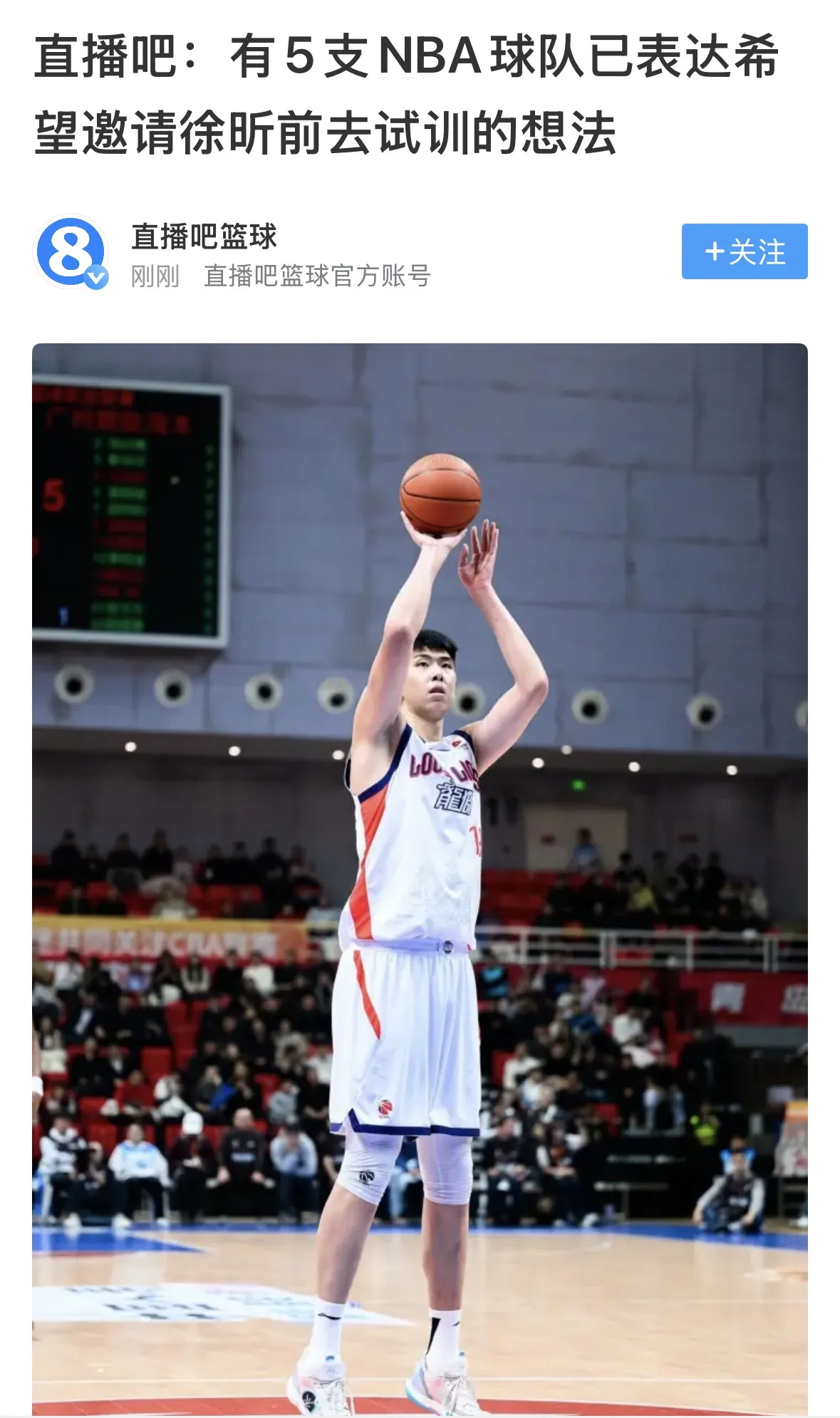 曝有5支NBA球队希望邀请徐昕试训5支NBA球队邀徐昕试训!中国高塔真要冲NBA了直播吧消息已有5支NBA球队向广州龙狮中锋徐昕发出试训邀请,计划赛季结束后赴美。还真是树挪死人挪活,徐昕一离开广东队,立马被5支NBA球队盯上,杜锋别光顾着骂,该想想问题所在了。