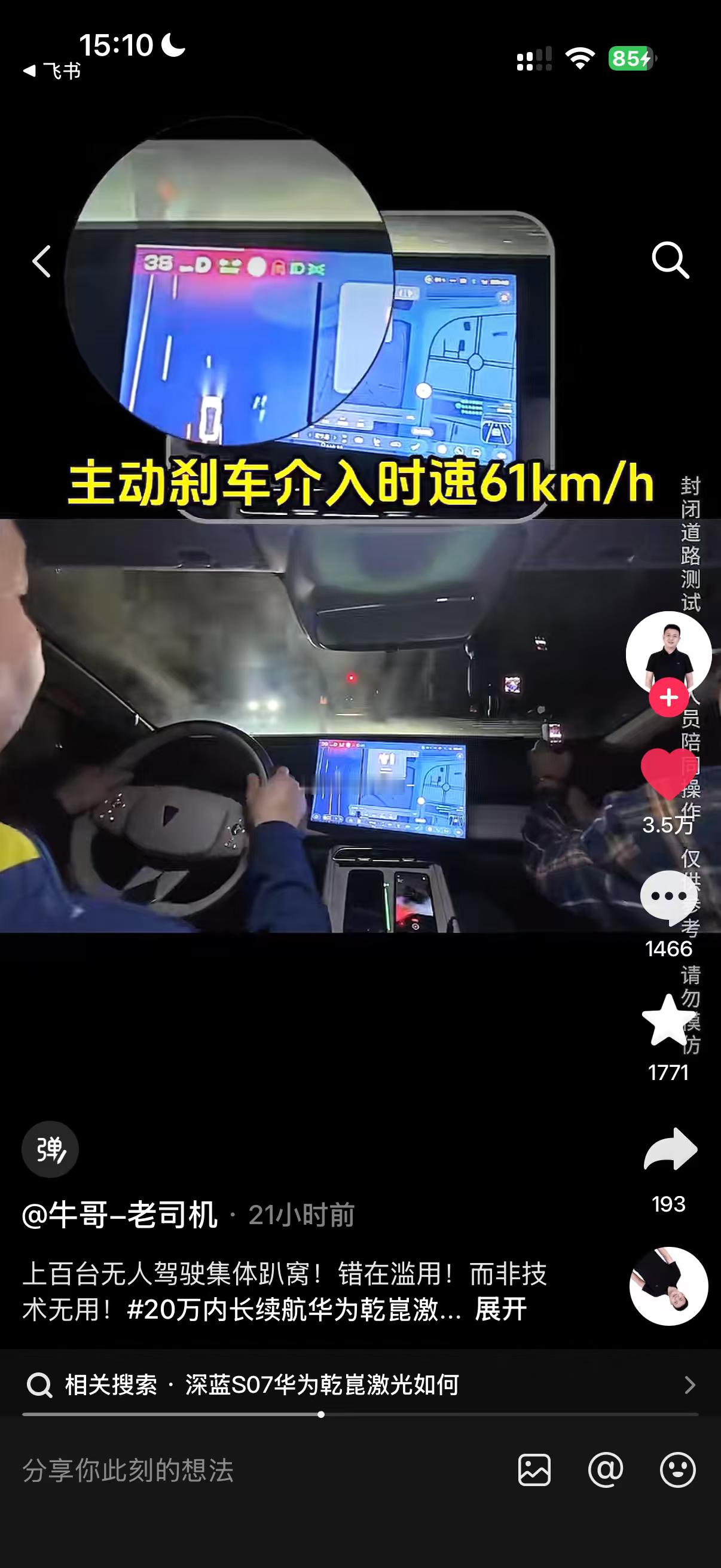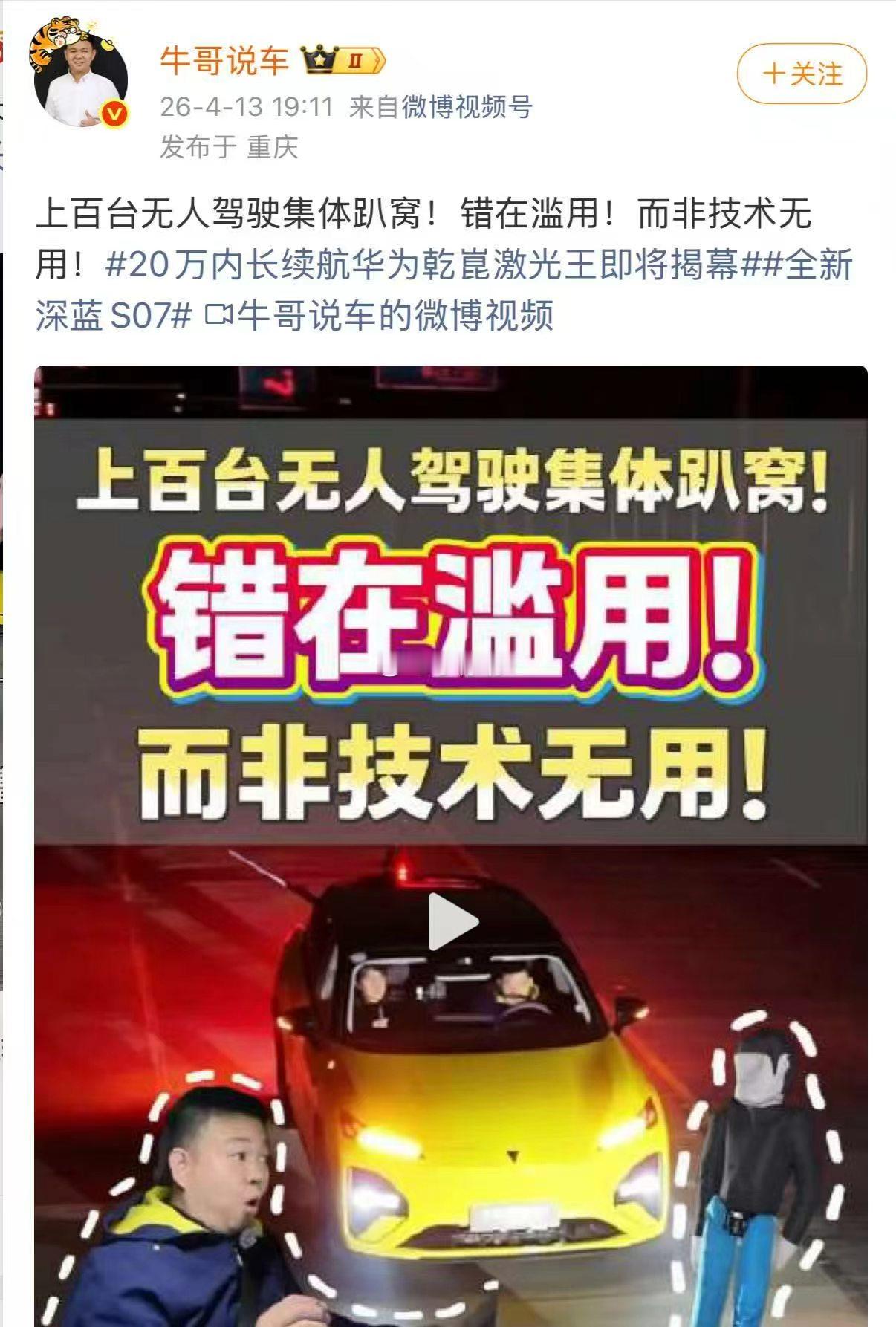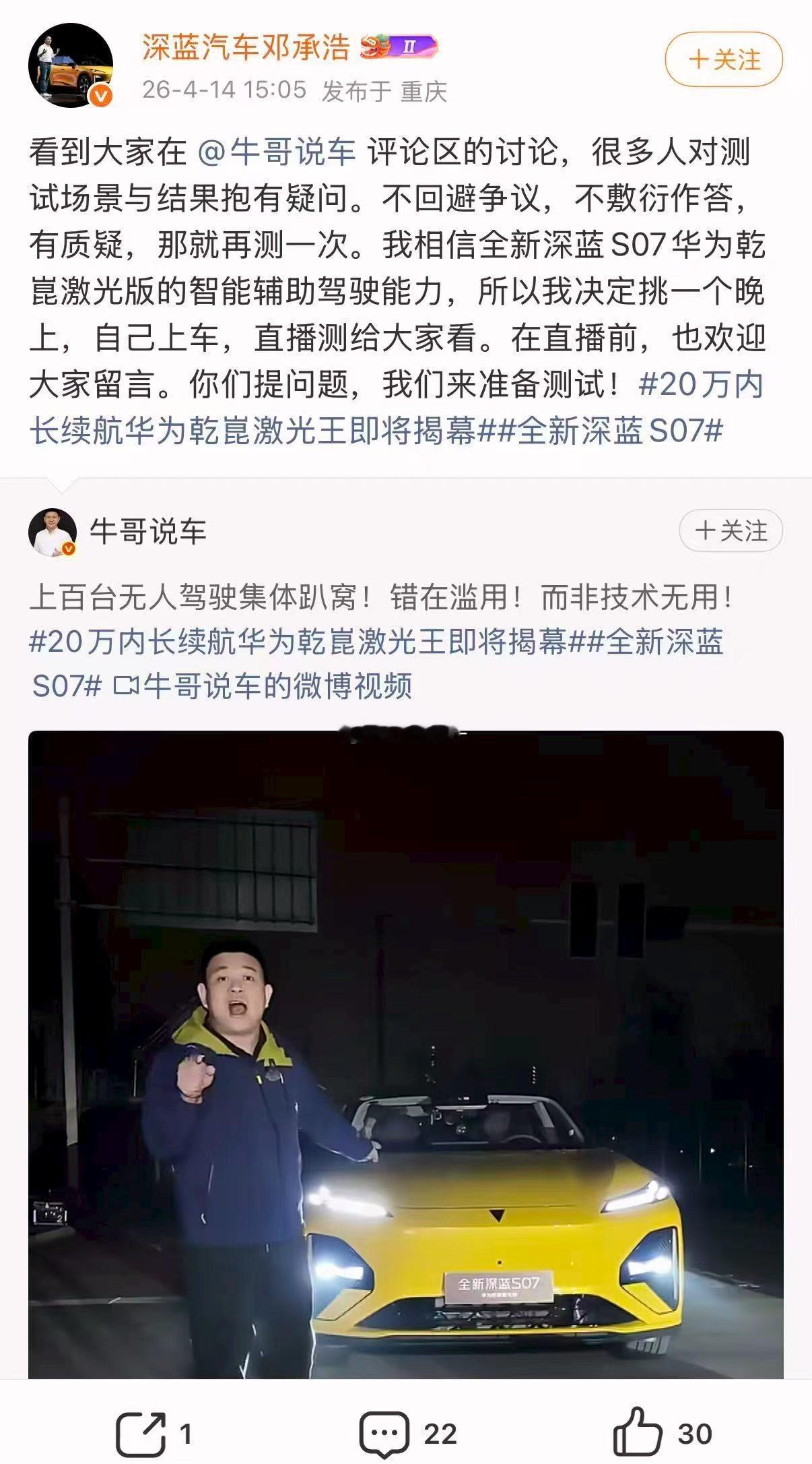 邓承浩回复博主智驾测试质疑网友质疑博主智驾测评结果当下网友对测评的核心诉求,就是真实、透明,拒绝套路。最近,深蓝S07的智驾测评引发网友热议,邓承浩没有陷入舆论争执,反而直接用一场直播实测给出答案,亲自上车、开放提问,把评判权完全交给用户。这种这种不回避、不敷衍、用事实说话的态度,不仅彻底化解了争议,更树立了品牌与用户良性沟通的范本,也让更多人关注到智驾技术的真实价值,这场直播一定要看!