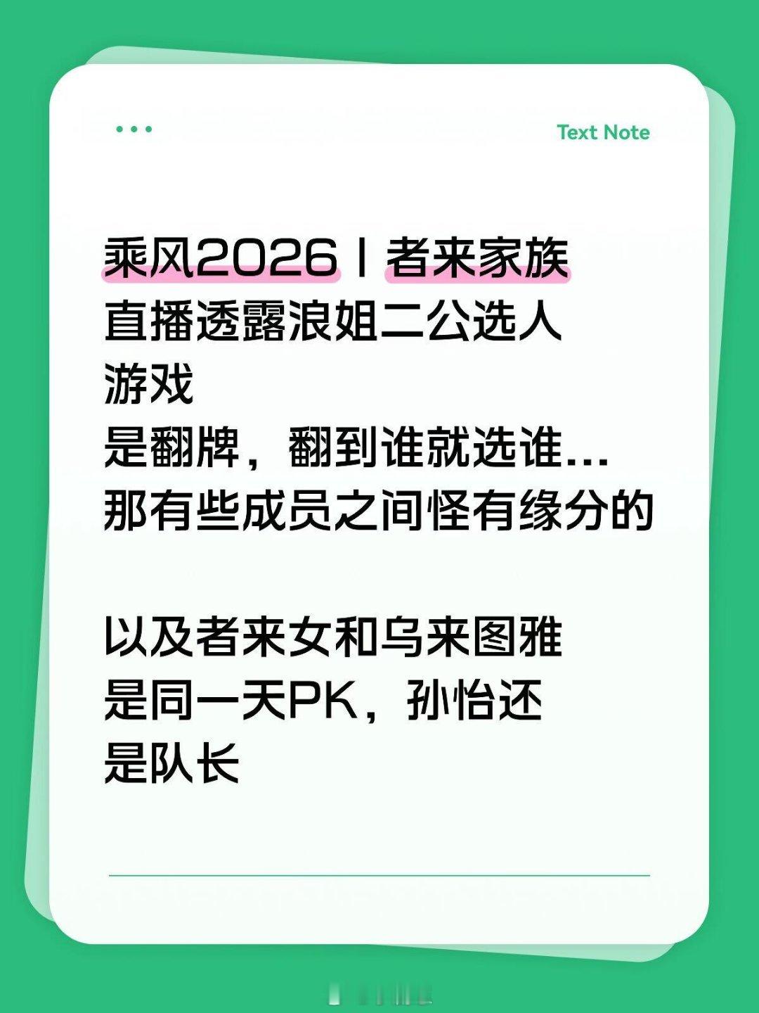 者来家族直播透露浪姐二公选人是翻牌翻到谁就选谁...那有些成员之间怪有缘分的以及者来女和乌来图雅是同一天PK,孙怡还是队长