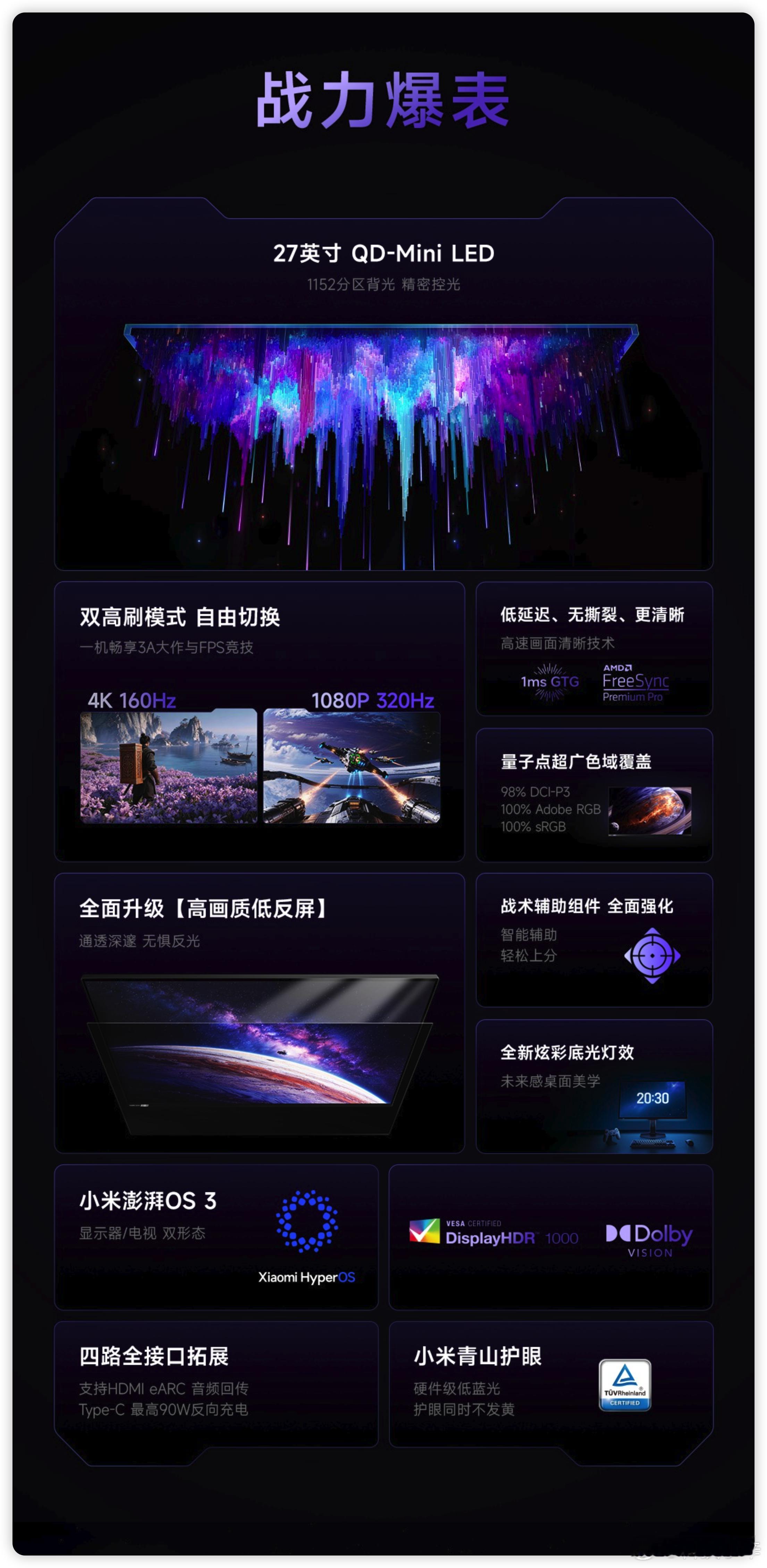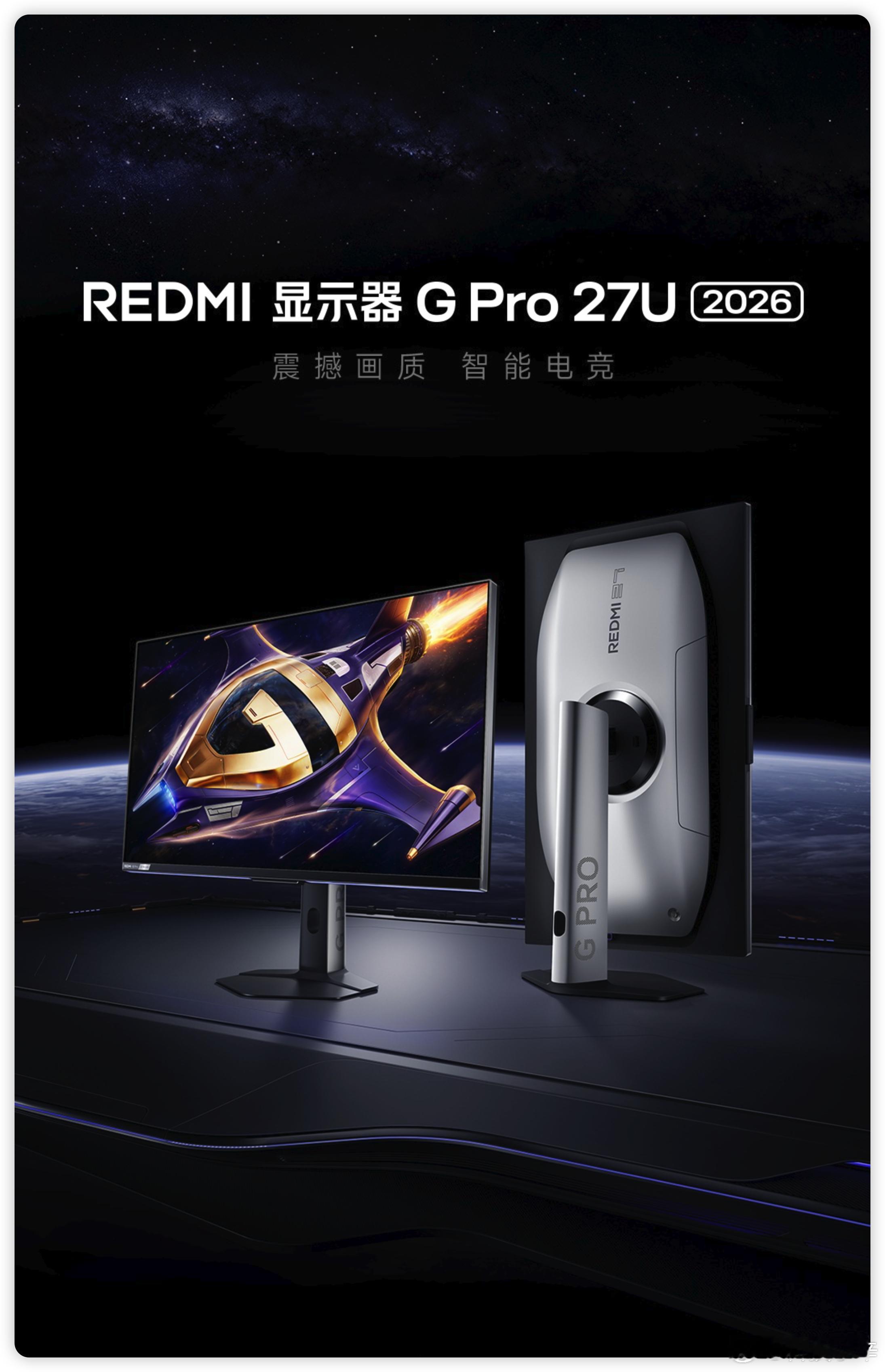 REDMI 那款好评如潮的显示器 G Pro 27U 出了新款,也就是 2026 款。升级的部分都是之前网友吐槽的小缺憾,这次通通补齐,真好啊。