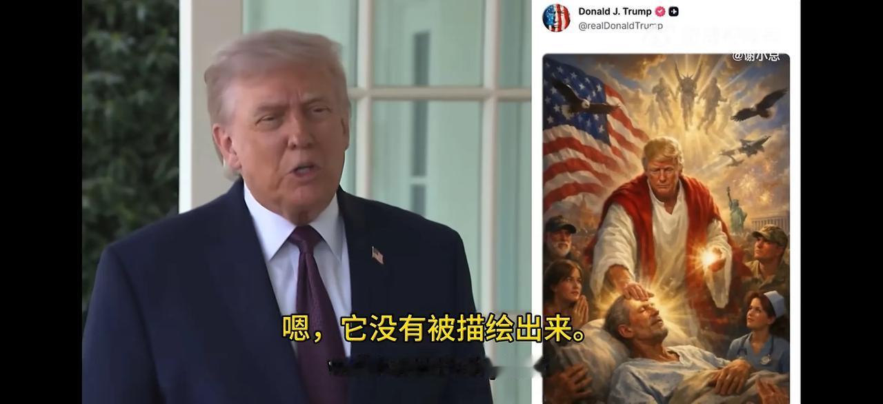 懂王嘴里真的是一句实话都没有,谎话连篇,出了问题就各种狡辩+推卸责任。他发了一张自己“化身耶稣”的AI画,然后招来一片骂声。懂王受不了,把画删了。被记者问,又狡辩说是化身医生,是大家理解错了,把大家当傻子。