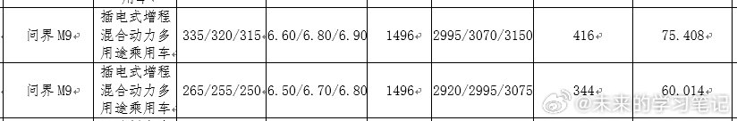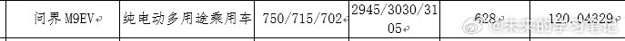 问界M9电池信息更新除了增程版60和75两个版本,纯电版电池120度,续航也超过