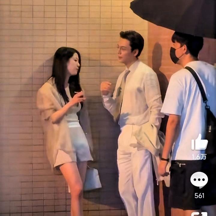 昏暗路灯底下,她白吊带衬得整个人发光,他金丝眼镜一戴,熟男那味儿全出来了。