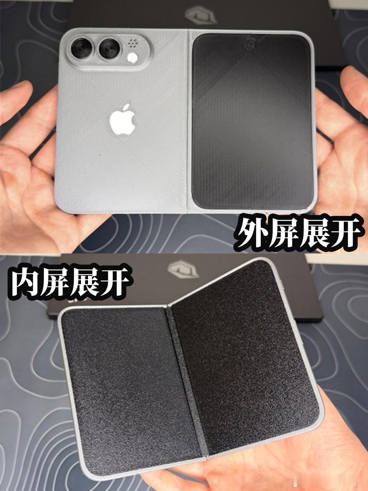 折叠屏iPhone外观实锤iPhone的首款折叠屏外观定位为横向阔折叠,比例和华为Pura X相似后盖很有iPhone的味道机身合上后轮廓为非对称型这个外观大家会喜欢吗?也不知道首款折叠会卖多少钱呢大家评论区聊聊!iPhone