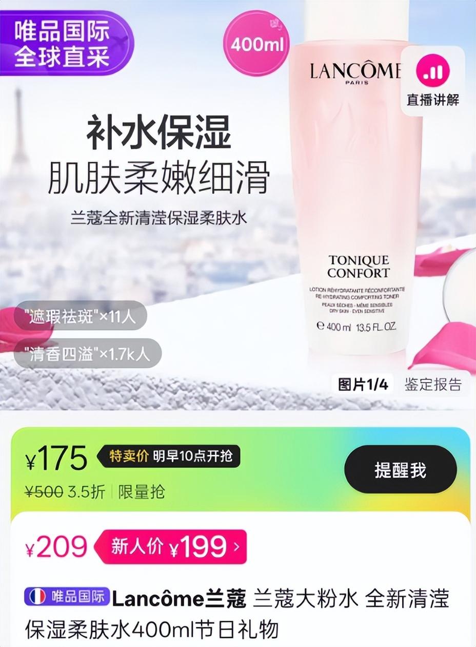 之前爽肤水空瓶,拿喷雾凑数根本顶不住,这才下决心挑款靠谱的。兰蔻大粉水早被朋友安利过,可官方价四百多,实在肉疼。抱着试试的心态去唯品会搜,居然挖到宝——400ml正装才175,30多万条好评直接打消顾虑,果断下单!