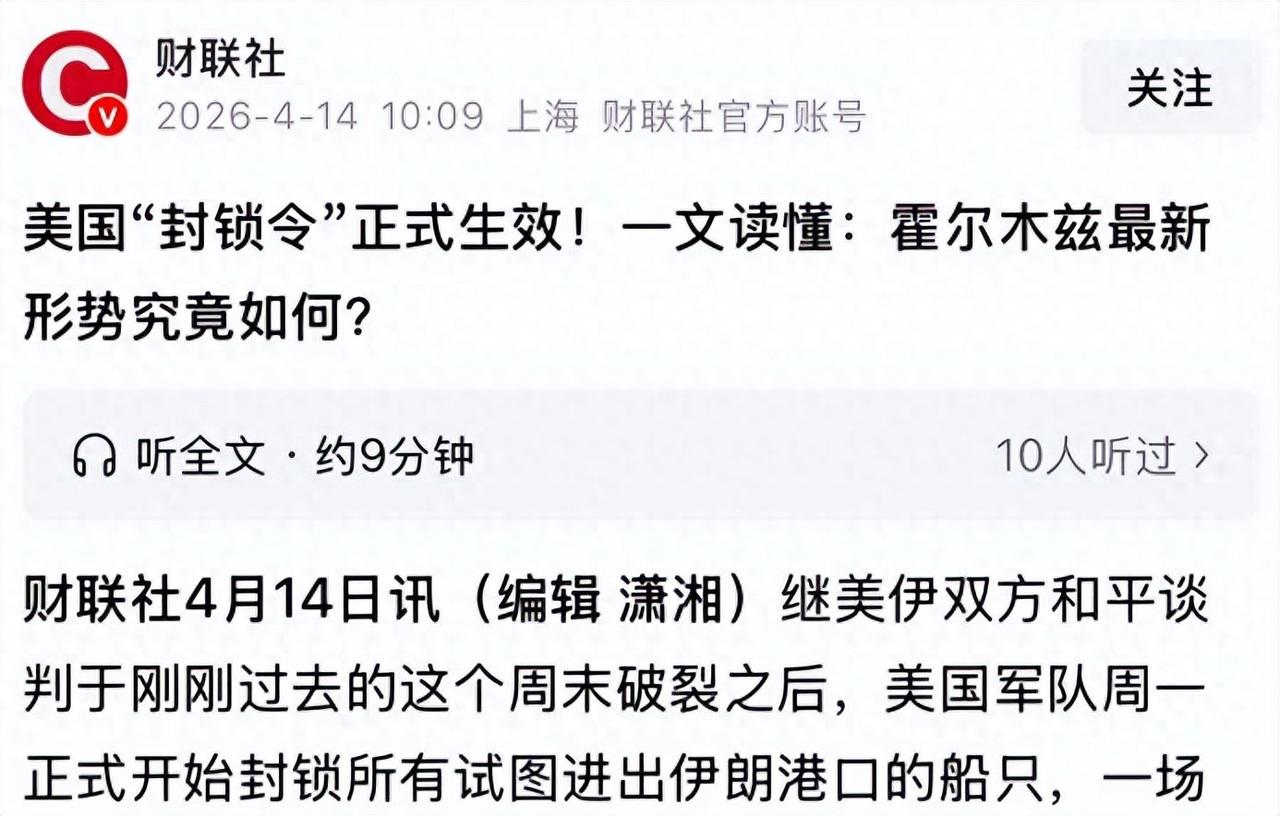 当地时间4月13日,美军正式启动对霍尔木兹海峡的海上封锁,两艘航母就位、十余艘战舰部署周边,一时间这条承载全球20%石油供应的能源大动脉,被牢牢掐住咽喉。