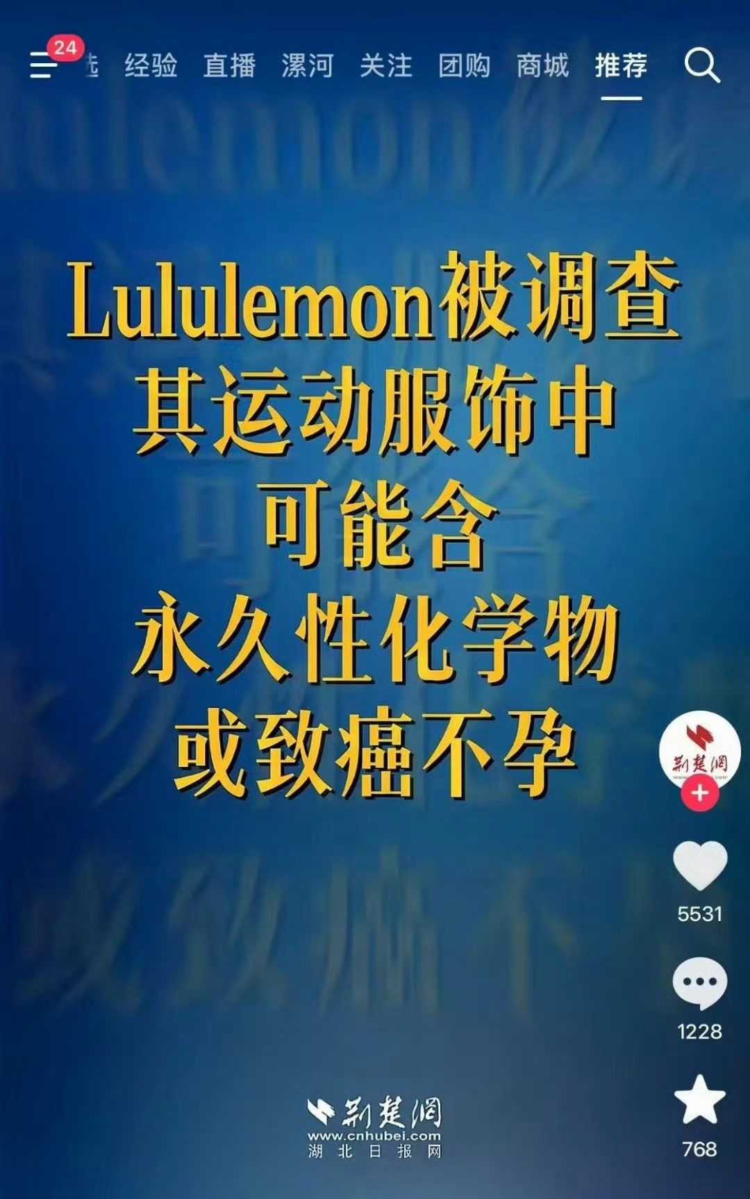Lululemon被调查 说是衣服可能涉嫌使用了PFAS化学品,导致癌症和不孕不