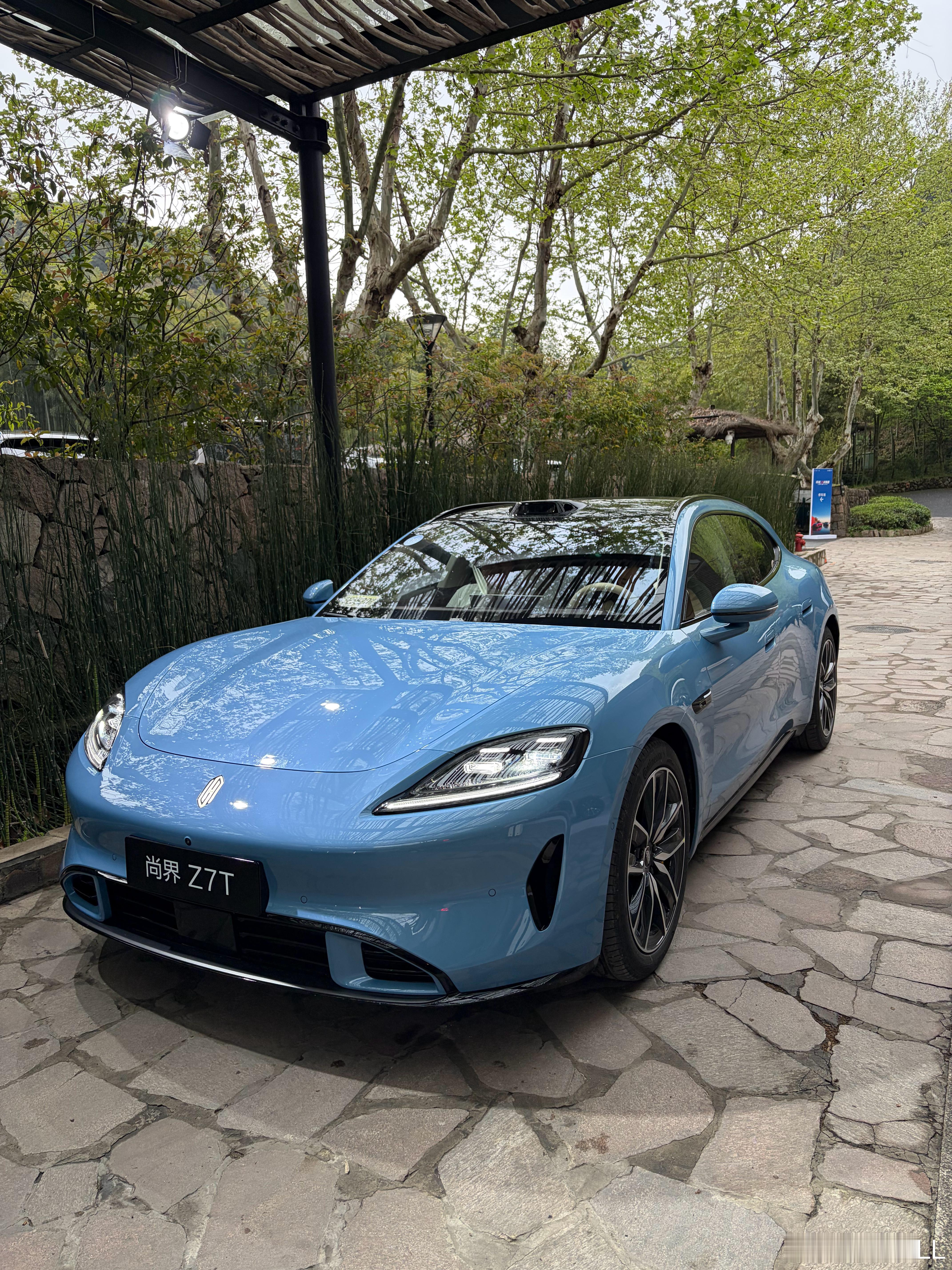 一下车就看到台浅蓝色的尚界Z7T,先拍两张!