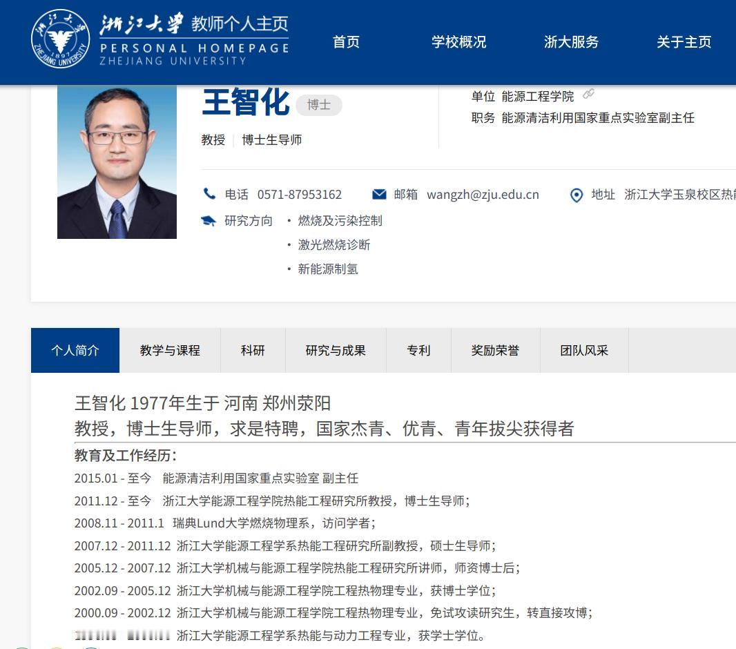 在履新内工大之前,王智化教授的头衔早已自带光环,他不仅是浙江大学的求是特聘教授、博士生导师,还是国家杰青,同时还兼任能源高效清洁利用全国重点实验室副主任。
