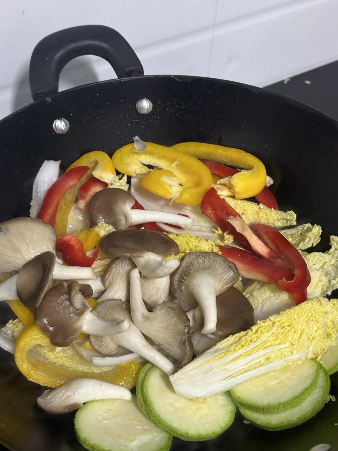 喜欢吃的蔬菜夯巴郎一起铺在锅里