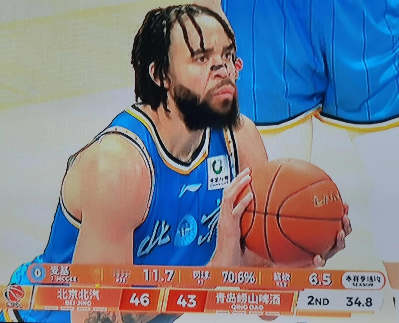 第一节最后两分钟,北京队打的很不顺手,比分一直落后,面对裁判员疑似不利的判罚,许利民多次与裁判进行交涉施压,激发球员斗志。