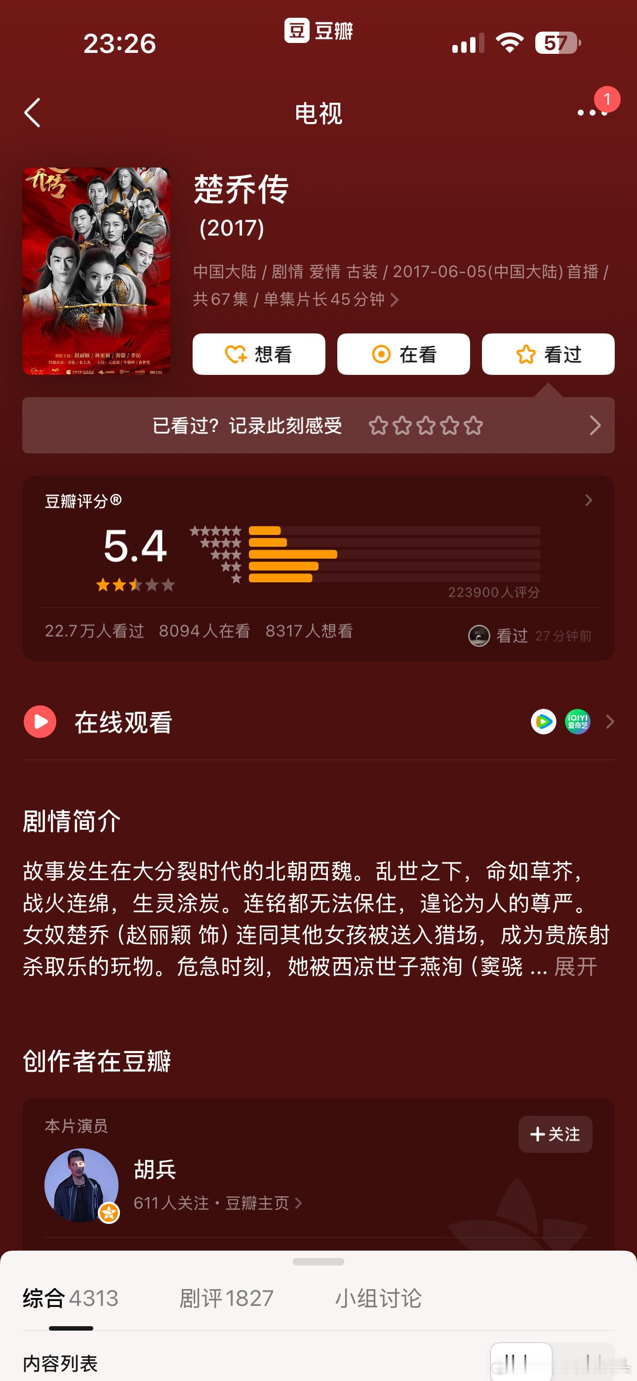 最近冰湖重生播出楚乔传再次翻红,结果一看评分才5.4?看了评论区还有说抄袭的?