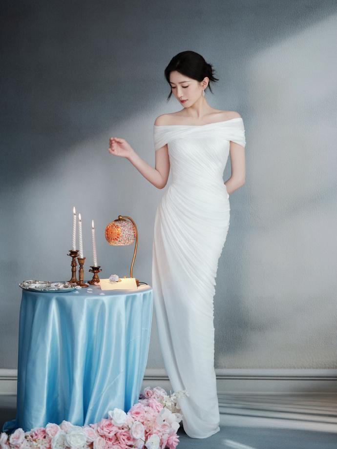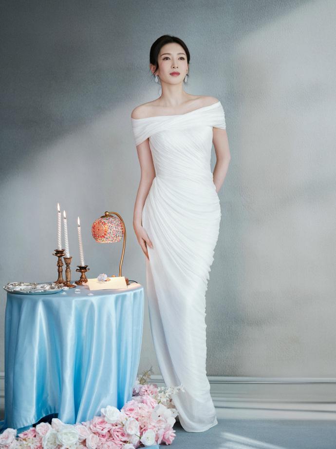 江疏影搭配的这件裙子上有很美的褶皱设计,能够凸显出浪漫感,整体效果很出彩。