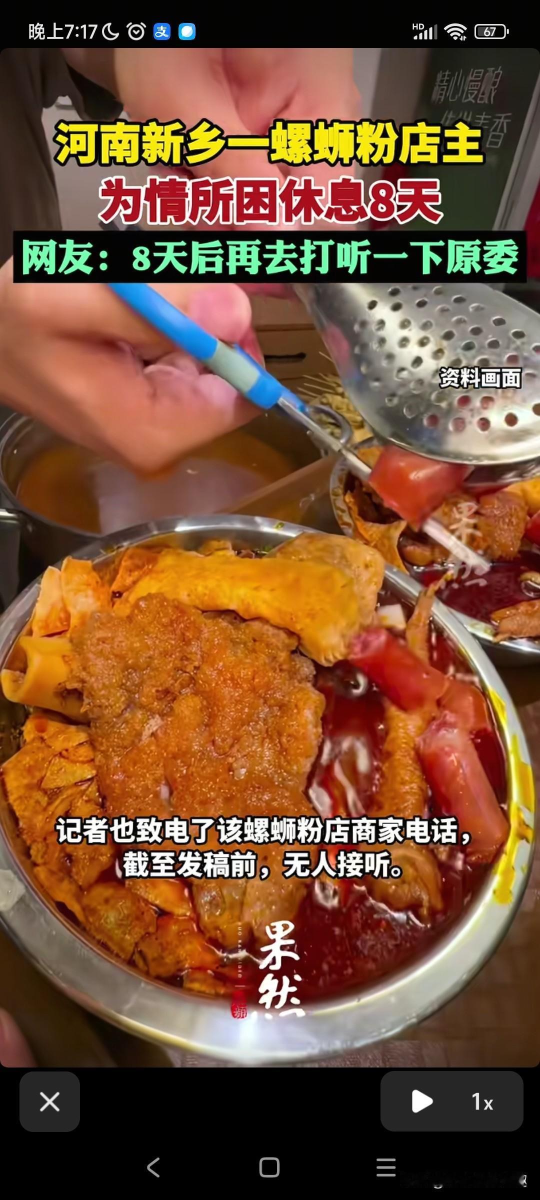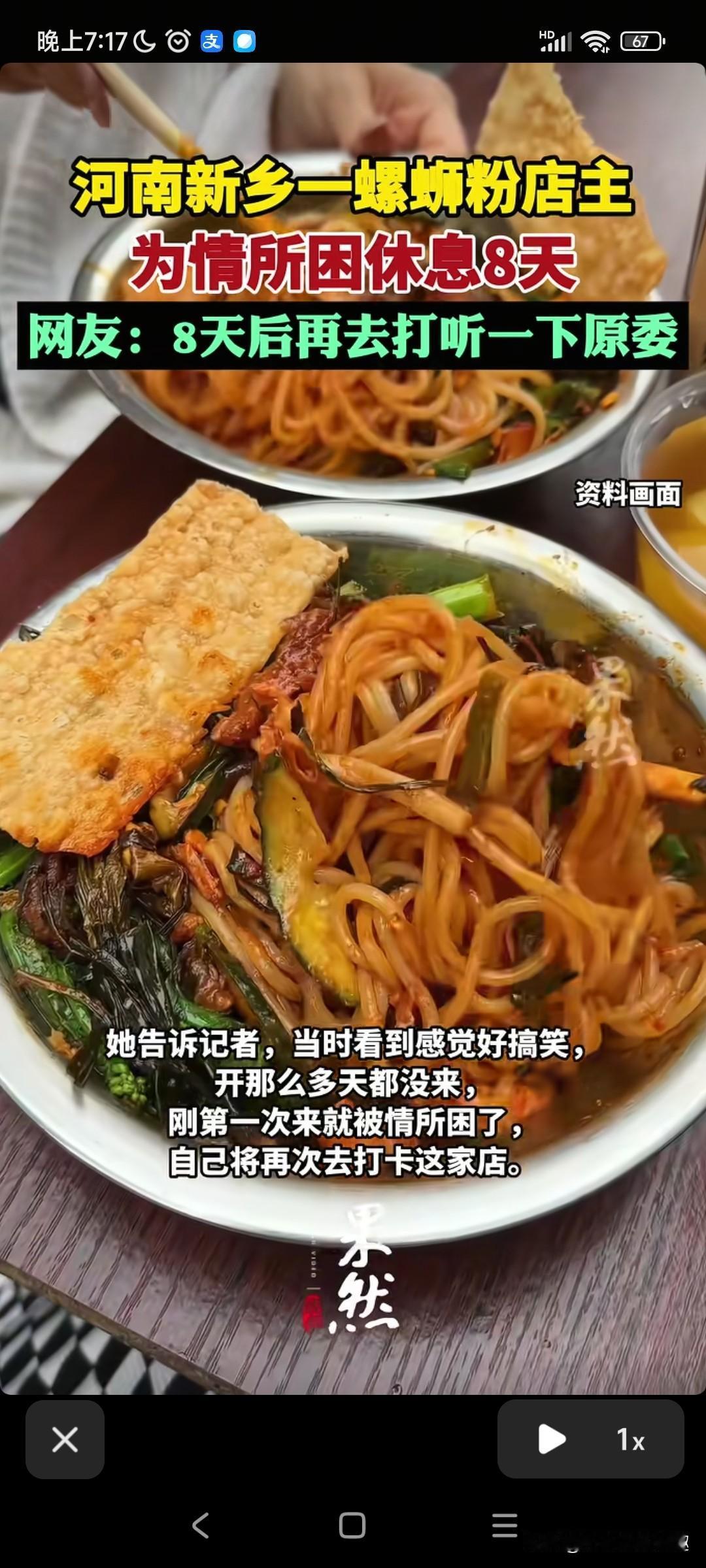 笑不活了,河南新乡的一家螺蛳粉店,竟然在门口外面贴着一张白纸,白纸上面黑字写着为情所困,休息8天。